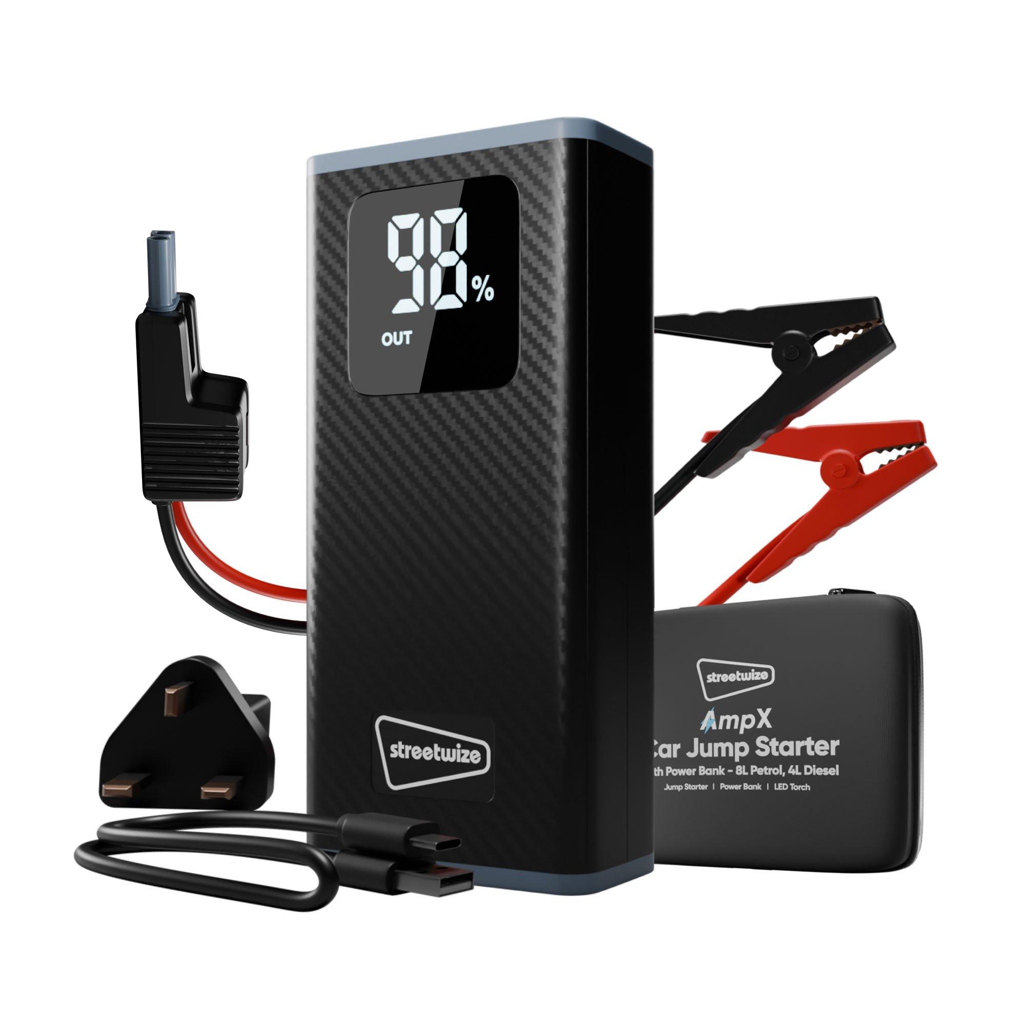 This compact and powerful emergency jump starter and portable power bank kit delivers a continuous output of 200 Amps and a peak output of 1800 Amps. It is designed to help you jump-start 12V petrol engines up to 2500cc (2.5L) and diesel engines up to 2000cc (2.0L). It is ideal for roadside emergencies or for professionals in the emergency breakdown assistance industry. The kit features a high-ratio polymer lithium battery with a cycle life of up to 1000 recharges.