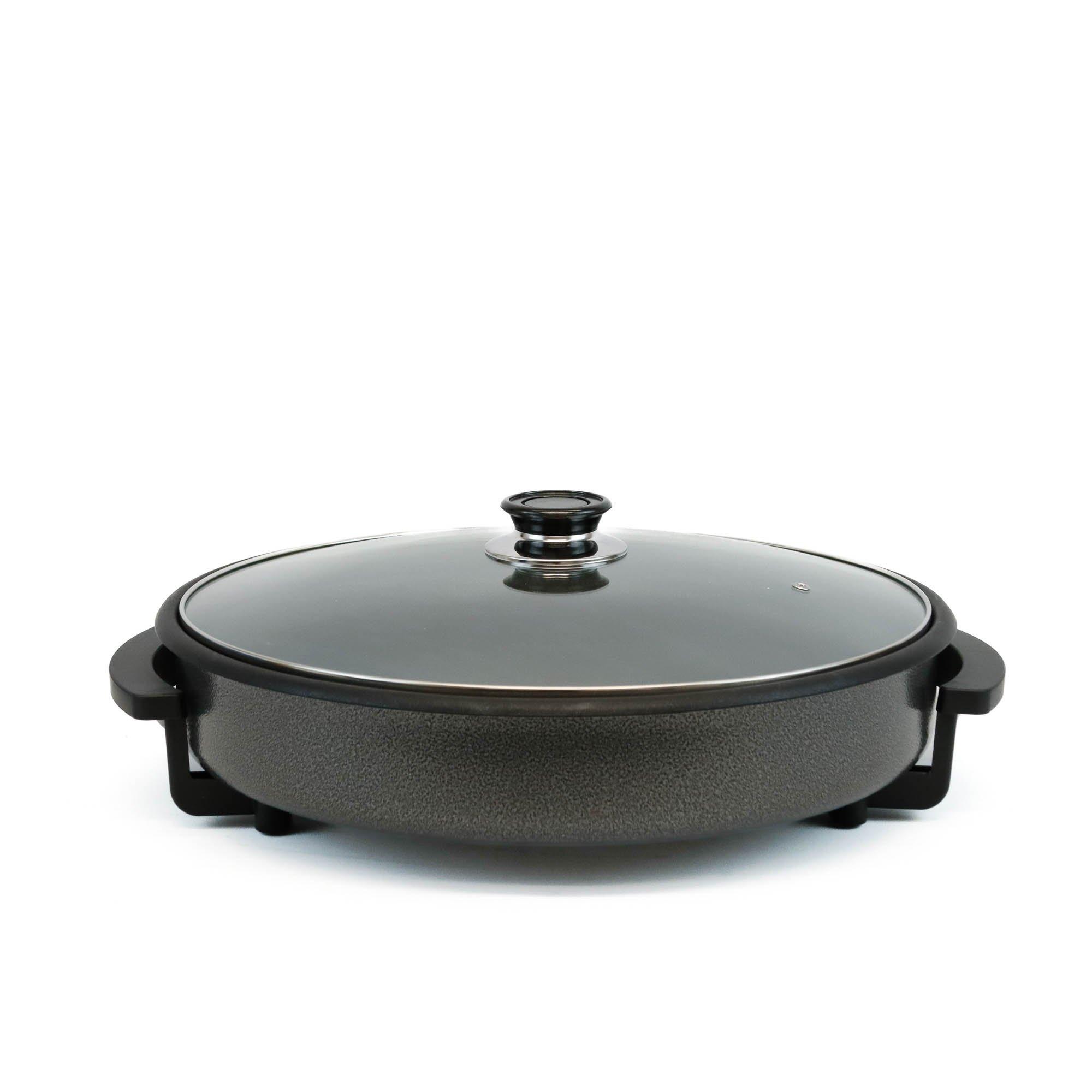 This electric skillet provides a flexible cooking solution without needing a hob. Simply plug the skillet to a mains power supply, adjust the thermostat to your requirement and start cooking your ingredients. This skillet can be used for multiple purposes. It is suitable for shallow frying, baking, boiling and grilling. And once turned off, it rapidly cools. Plus, with its 2-layer non-stick coating, it is easy to clean once after use. Ideal for camper, caravanners, motorhome users and for those who live in student accommodation. , Adjustable thermostat up to 240,C , Low wattage: 1500W , Diameter: Inner/Outer: 38/40cm / 4cm depth , 1m power cord , EMC/GS/ROHS/LFGB/LVD certified.