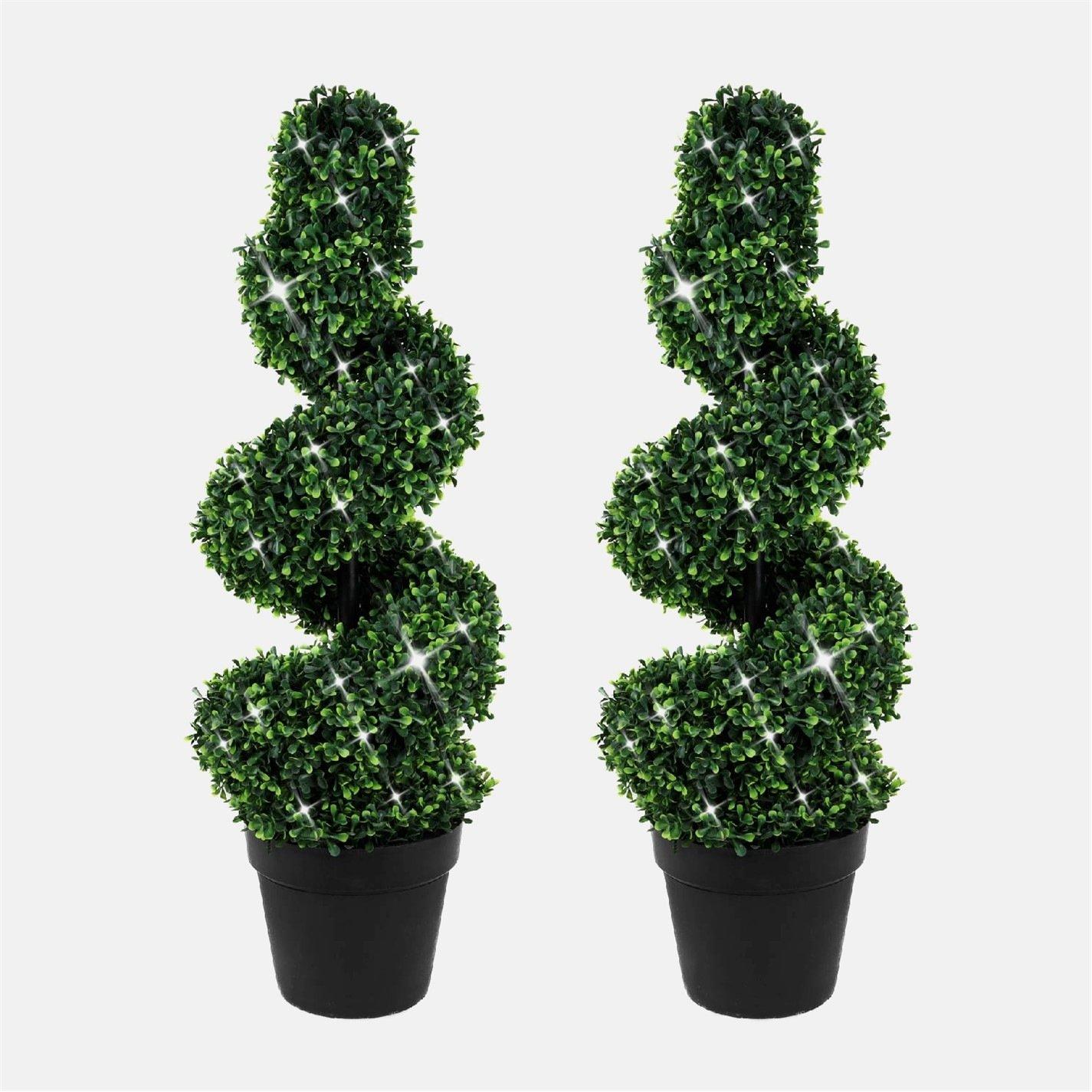 Streetwize Pair of Artificial Topiary Trees - Solar Powered Twist Style