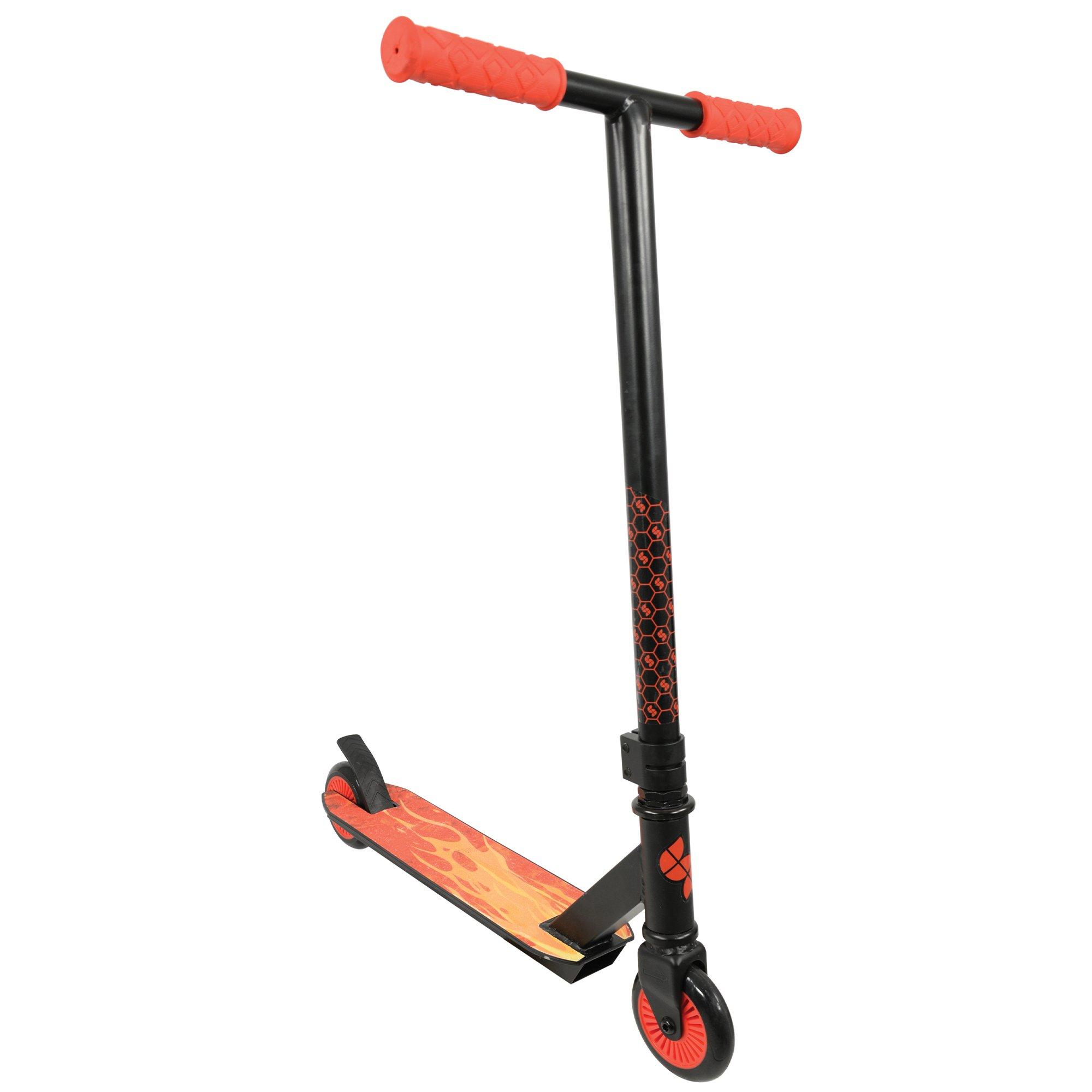 Enter the world of stunt scootering with the Stunted Fireglow Stunt Scooter - Featuring black matte finish and contrasting glow in the dark elements, this scooter is sure to stand out! This scooter is ideal for beginner riders and up and is flush with features to ensure the best ride with the highest quality!