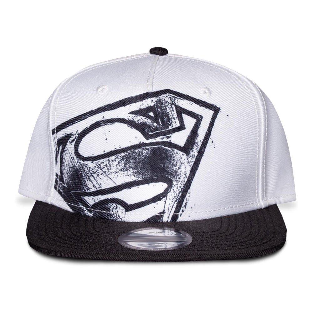 You'll feel just as cool as Superman with this unique snapback cap. The black and white colour palette really brings out the sublimation printed, graffiti-inspired front graphic of the iconic Superman logo. While on the back, you'll find a smaller but equally cool woven logo. Open at the back and adjustable for an optimal and comfortable fit.