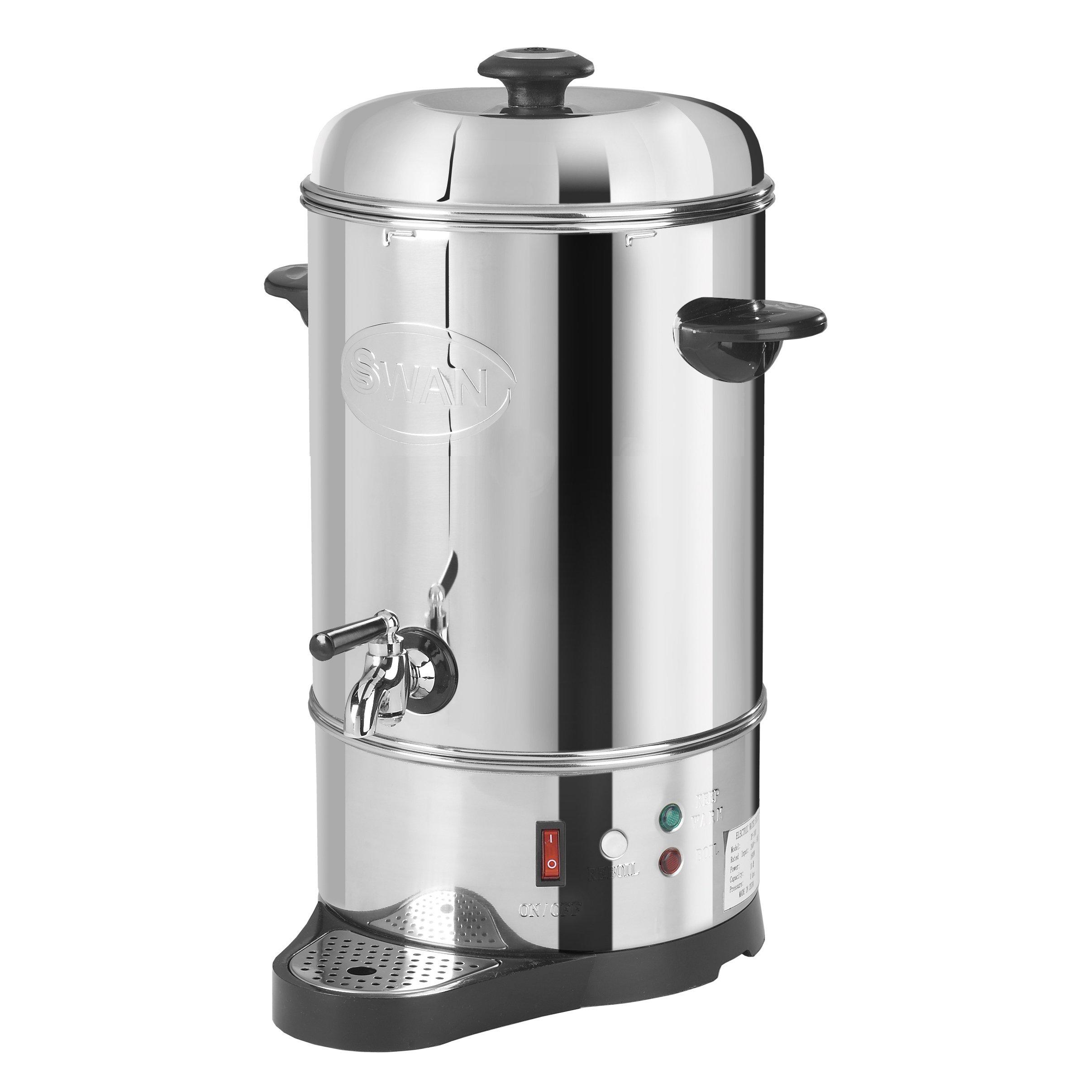Constructed from hygienic stainless steel and with exceptional build quality, this 8 litre hot water urn from Swan is designed to last and will provide years of sterling service in any kitchen. Features include 'Keep Hot' automatic temperature control, 'Boil Now' button, unique lid design that prevents the noise often synonymous with urns of this type, as well as a special tap to prevent accidental operation. An extra durable, concealed element allows for easy cleaning and innovative insulation prevents the escape of condensation.