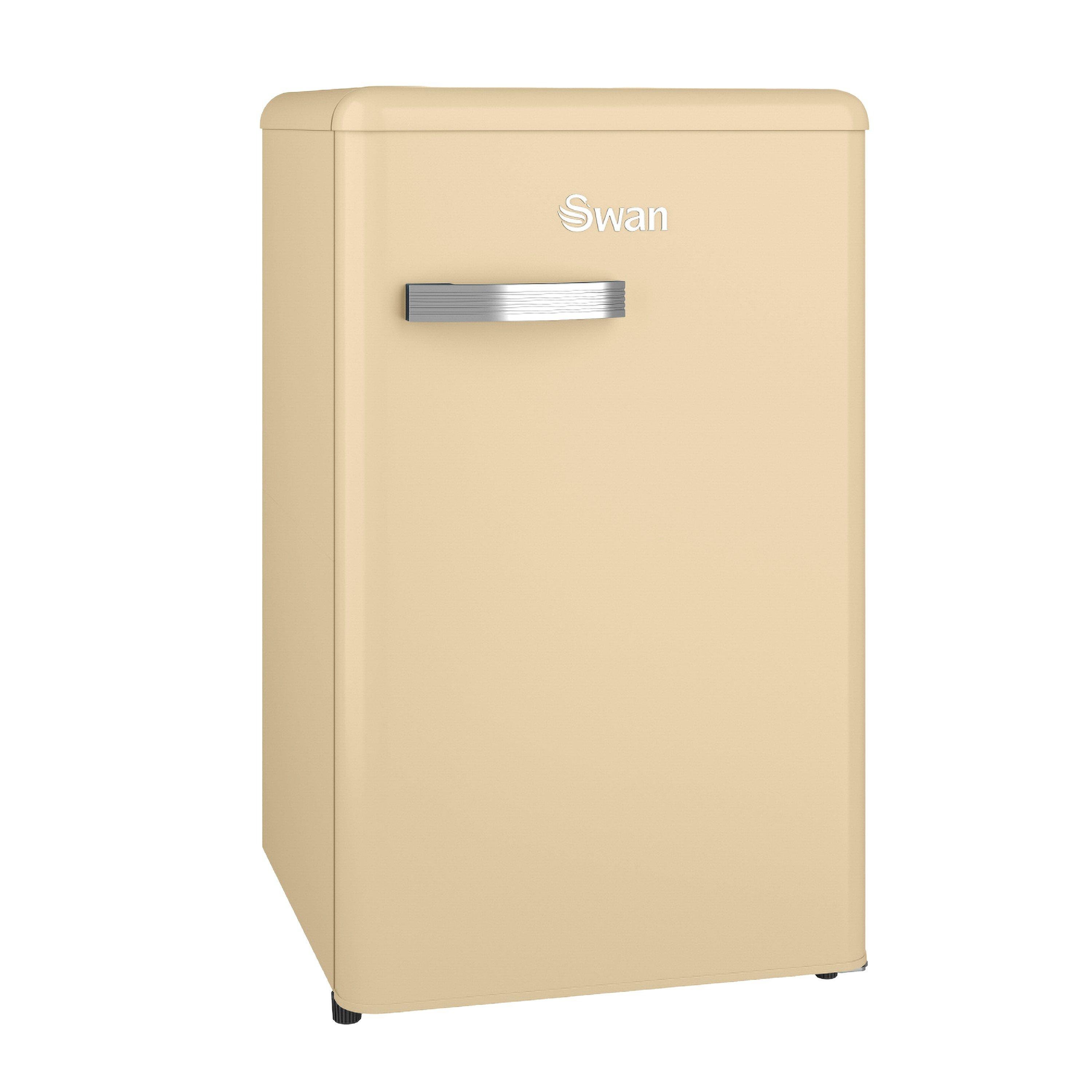The Swan Retro Under Counter Fridge combines style and practicality with a 90-litre total capacity. It features a 77-litre fridge and 13-litre freezer. It includes a Glass shelf, 3 Door shelves and 1 Salad drawer for organised storage. This compact fridge freezer has been designed to fit perfectly under worktops, helping best utilise space in smaller kitchens, apartments and offices. It has an E energy rating, making it economical and eco-friendly without compromising on performance. The stylish soft cream exterior, rounded corners, and polished metal handle add retro elegance that looks great in any decor. Available in trendy retro shades, it seamlessly integrates into any colour scheme.