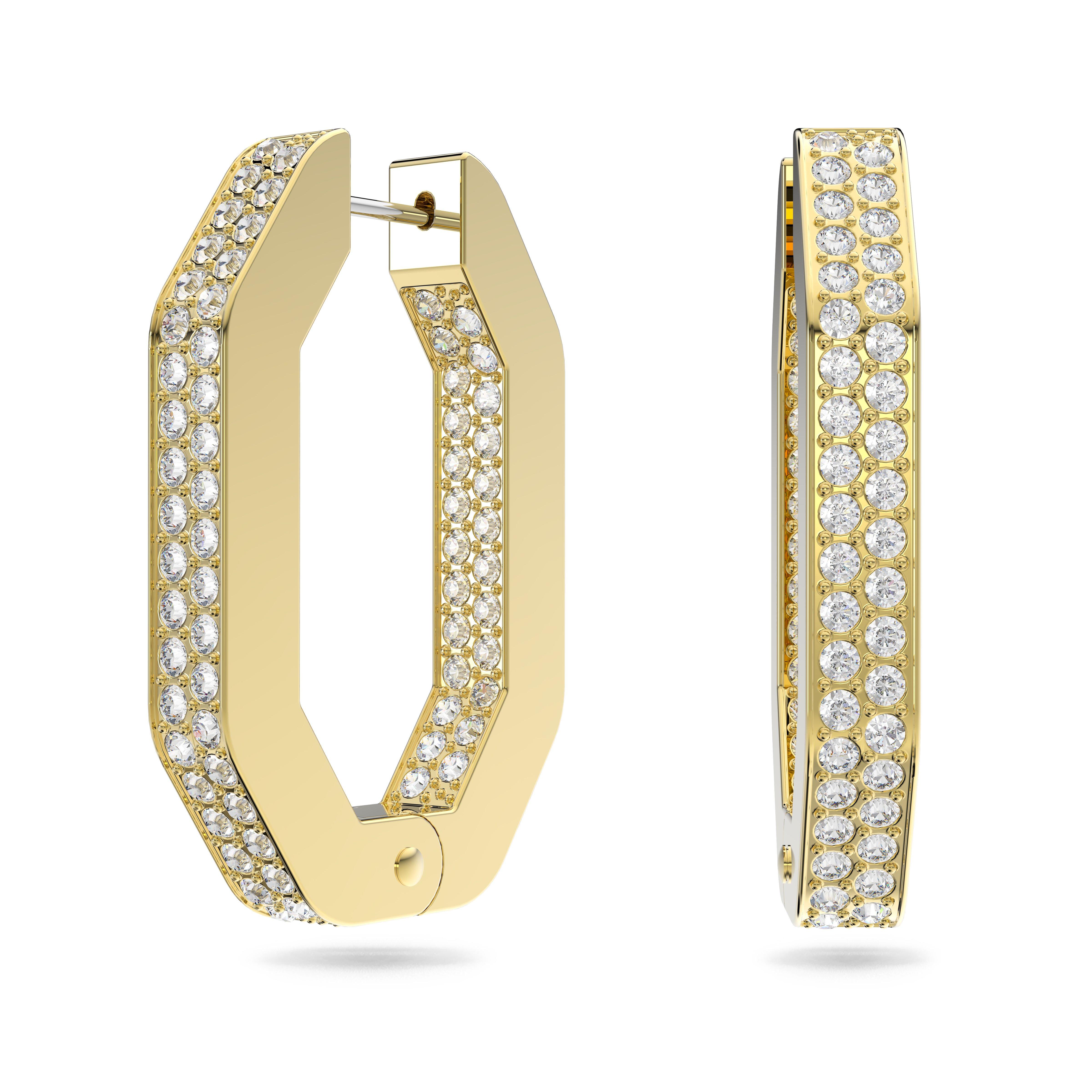 SwarovskiDextera hoop earrings, Octagon shape, Medium, White, Gold-tone plated