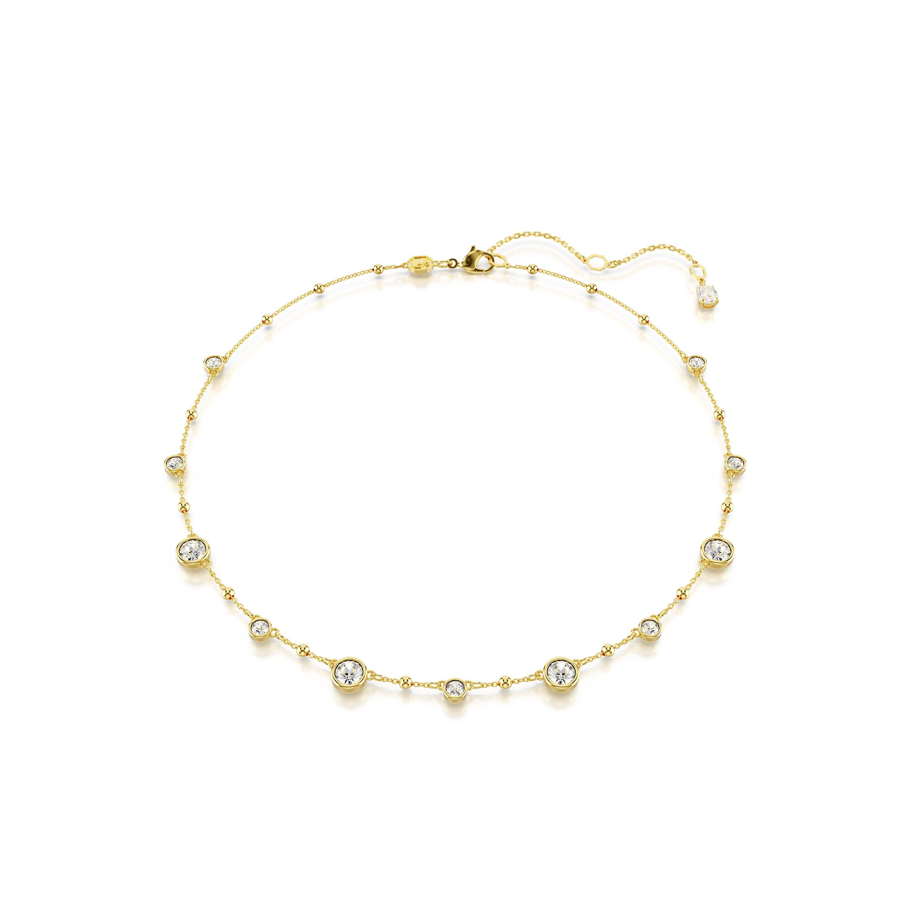 SwarovskiImber Necklace, Round Cut, Scattered Design, White, Gold-Tone Plated