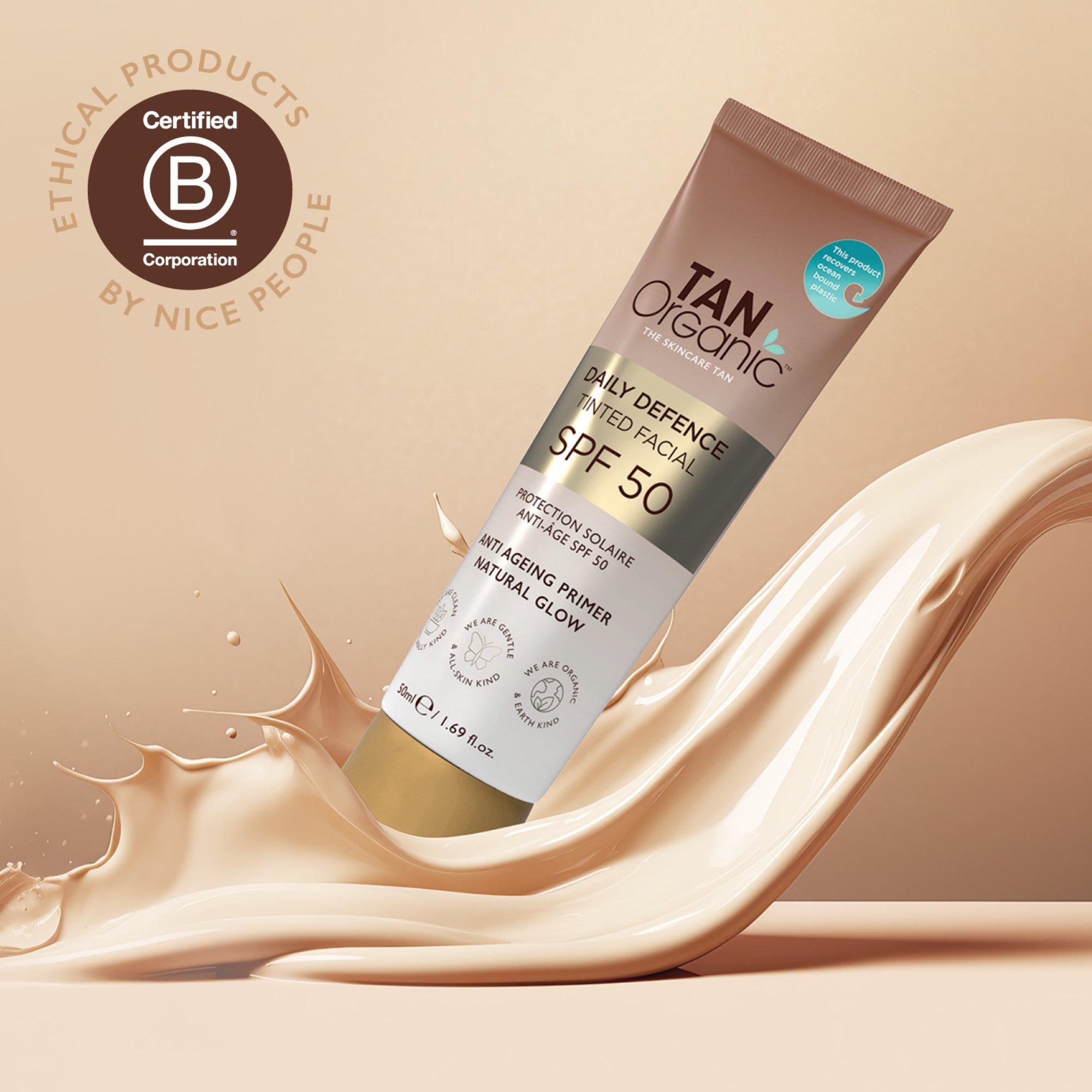 TanOrganic SPF50 Daily Defence Facial Sunscreen 50ml, TanOrganic SPF50 Daily Defence Facial Sunscreen is a high-performance, eco-conscious formula designed to protect, hydrate, and nourish your skin every day. Offering broad-spectrum UVA and UVB protection, this lightweight, non-greasy sunscreen is enriched with natural and organic ingredients, making it ideal for sensitive and all skin types. Infused with aloe vera, hyaluronic acid, and antioxidant-rich botanicals, it not only defends against sun damage but also soothes and moisturizes the skin, leaving a radiant, non-shiny finish. The formula is reef-safe, vegan, and free from harmful chemicals, aligning with TanOrganic,s commitment to sustainability and skin health. Apply generously to clean, dry skin on the face and neck every morning as the final step in your skincare routine and at least 20 minutes before sun exposure. Reapply every 2 hours, especially after swimming, sweating, or towel drying. Suitable for use under makeup. For daily wear, even on cloudy days. Perfect for those seeking clean, conscious sun care without compromising on performance or comfort.