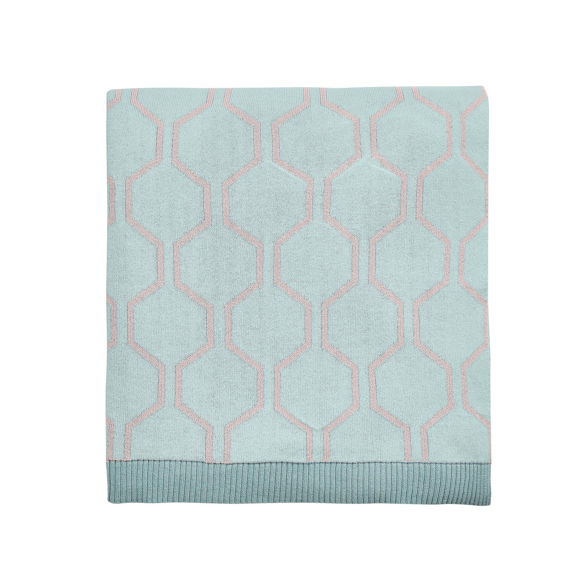 Enhance the look with the geometric trellis pattern throw in opal, complete with a fine knit hem on both ends.