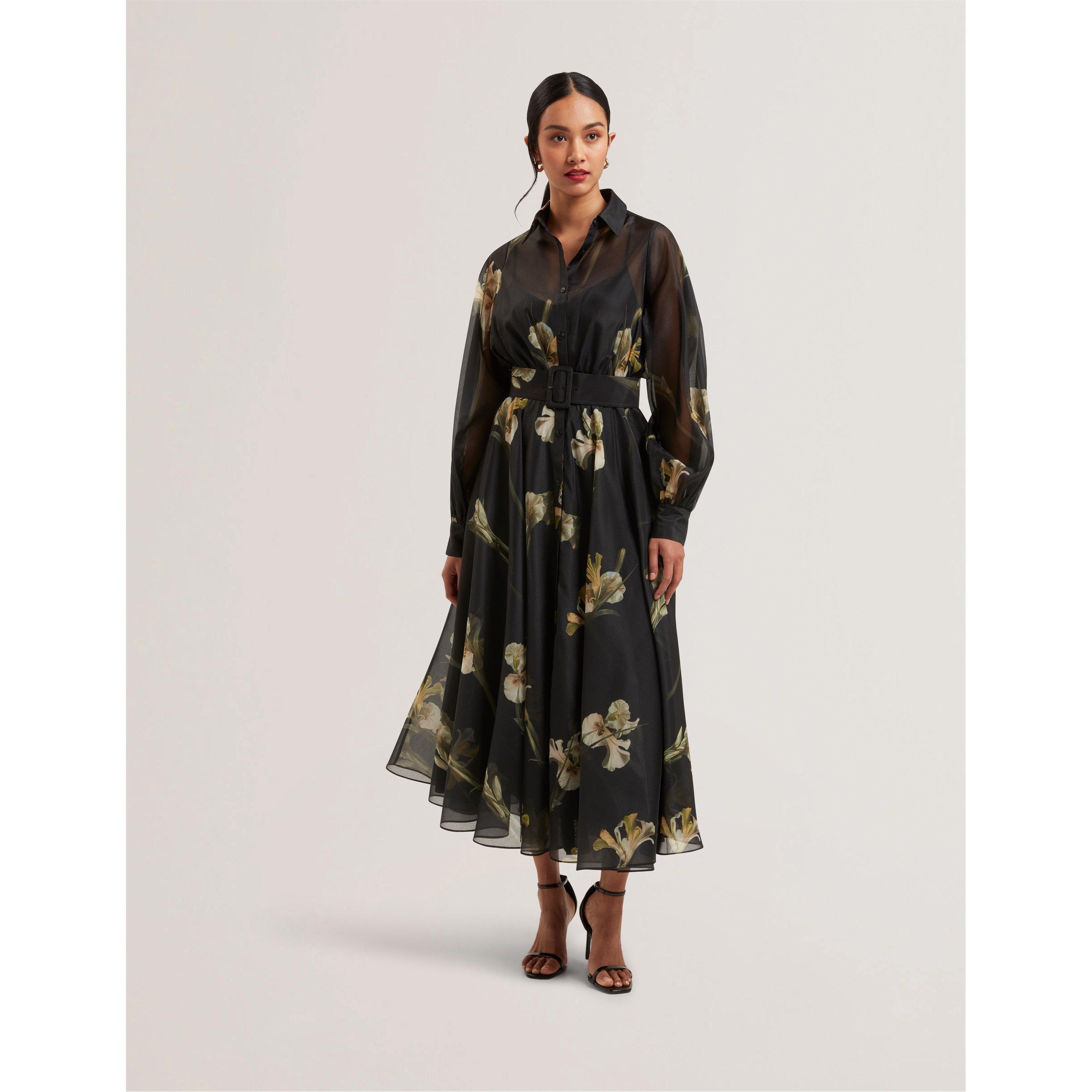 Ted Baker Women's Liorral Printed Organza Belted Maxi Shirt Dress