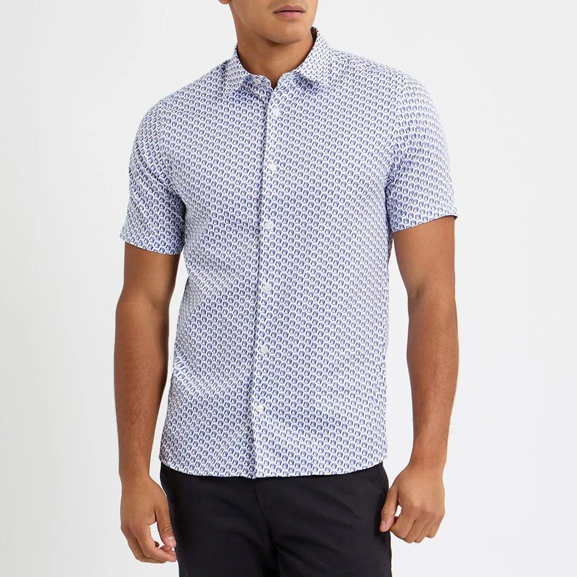 Ted Baker's Geo Short-Sleeve Patterned Shirt features a bold geometric print on a tailored fit. The structured cut and precise pattern make this a smart addition to any contemporary wardrobe.