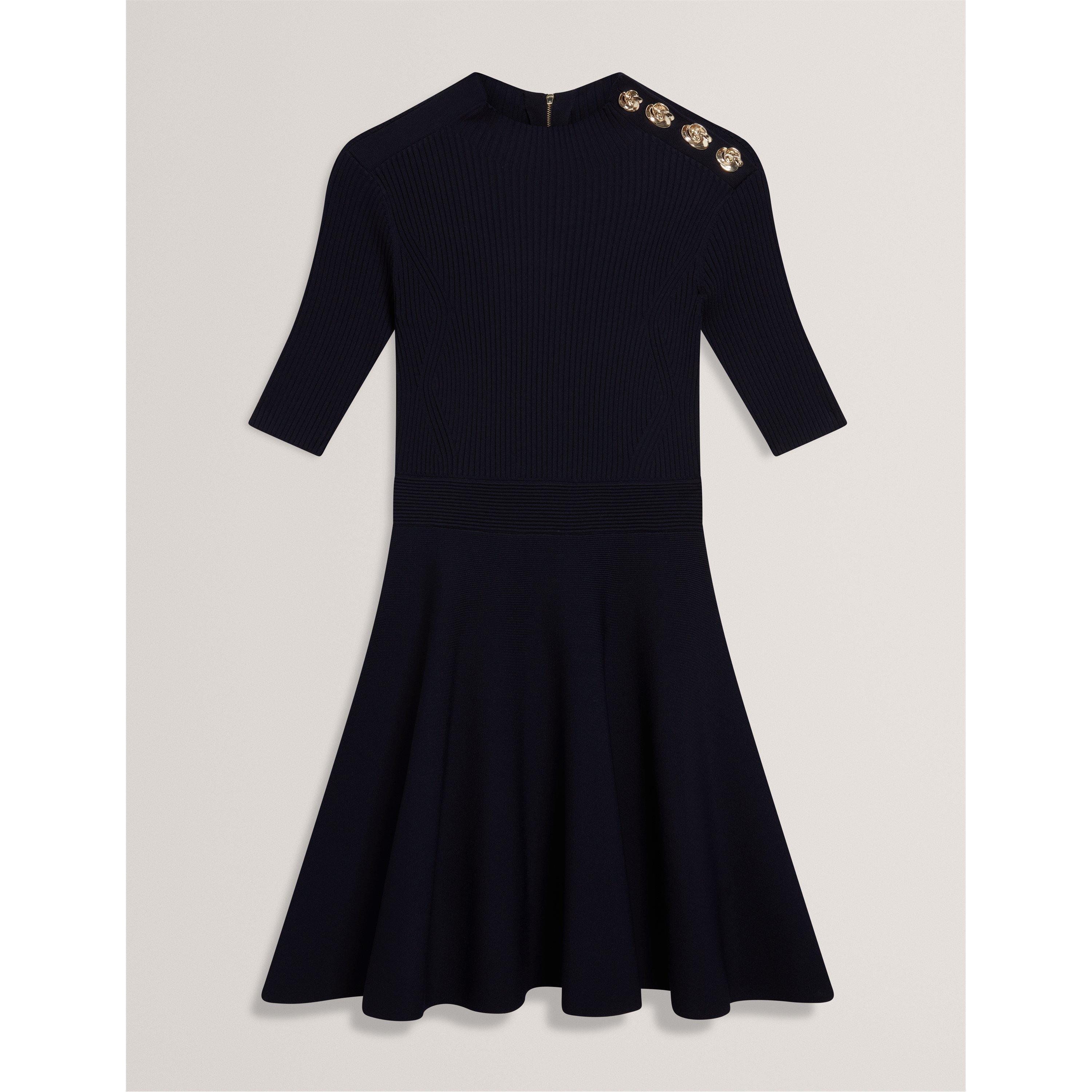 This Ted Baker Knitted Textured Skater Dress offers practical style and everyday wearability. The textured knit fabric provides flexibility while the flared cut creates movement as you walk. The classic design includes detailed stitching characteristic of the Ted Baker brand.
