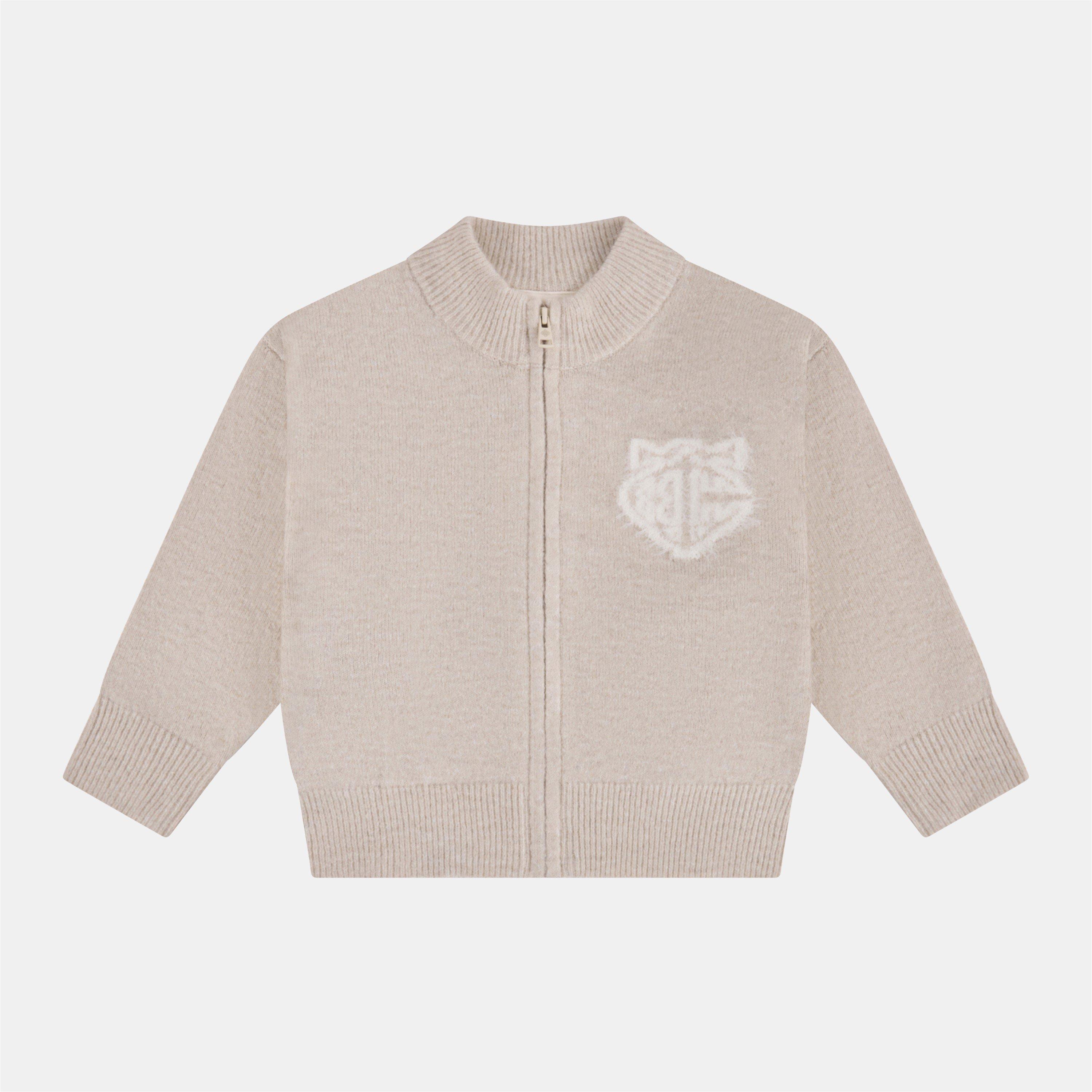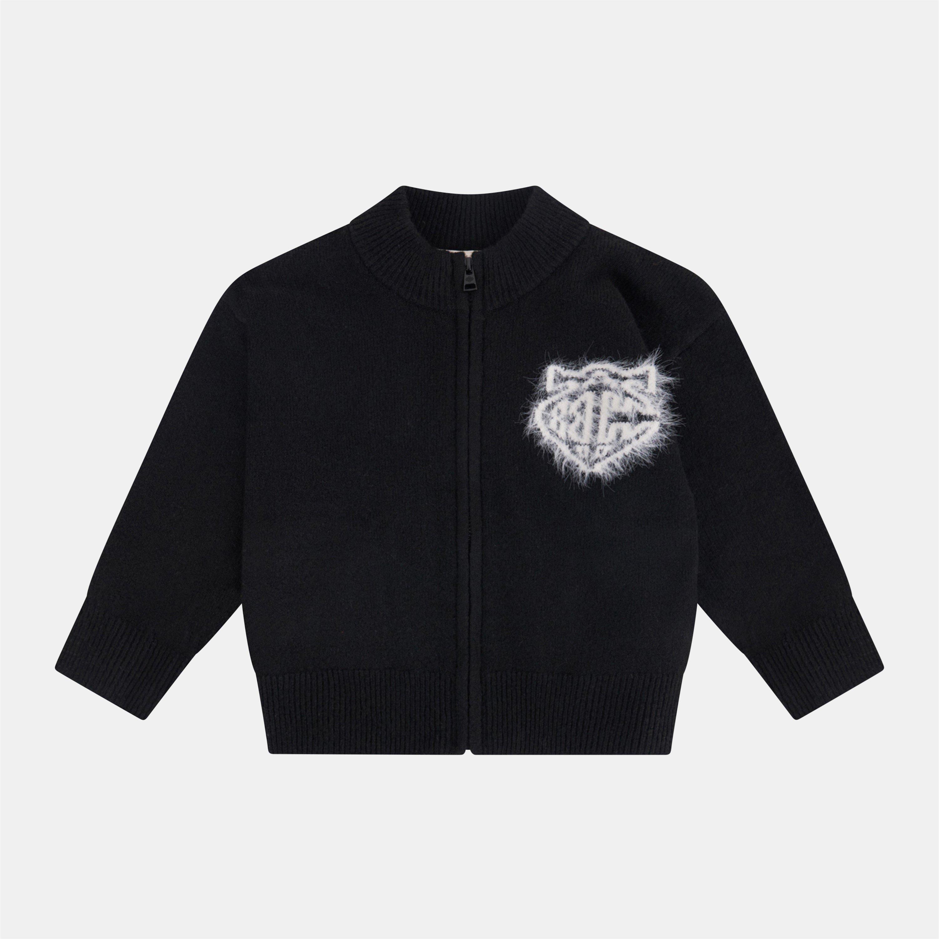 The Couture Club Monogram Fluffy Knit Zip Through is cut to a relaxed fit with a funnel neck. Soft and easy for after-school wear.