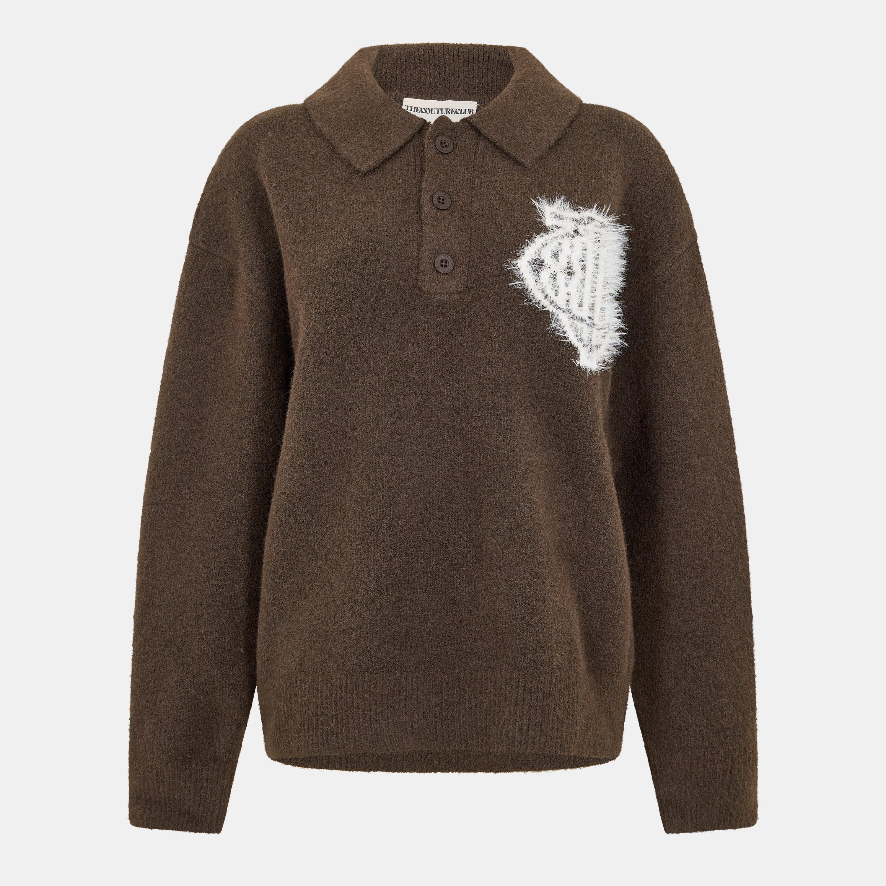 The Couture Club Women's Soft Knitted Long Sleeve Polo Shirt features a soft, plush knit fabric. The long sleeve design offers coverage with a defined shape.