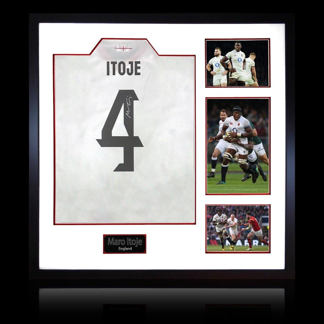Beautifully presented Elite Frame with signed England shirt from Maro Itoje. This item measures approximately 820mm x 820mm. This item is accompanied with an certificate of authenticity from The Fan Cave.