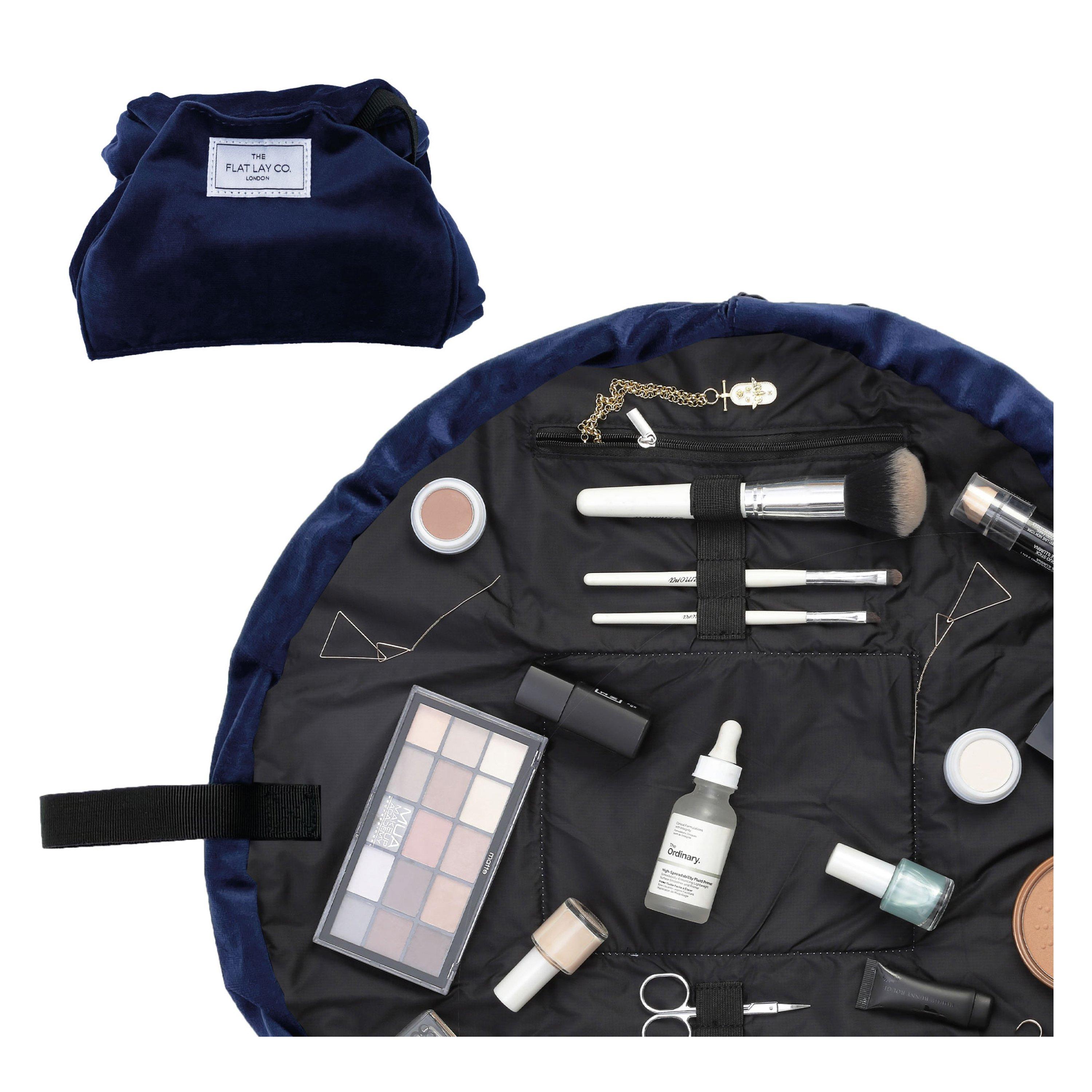 The Flat Lay Co. drawstring makeup bag opens totally flat in seconds, saving you time and no more rummaging! It's amazing for topping up your makeup on the go and always protects your cosmetics from grubby surfaces.