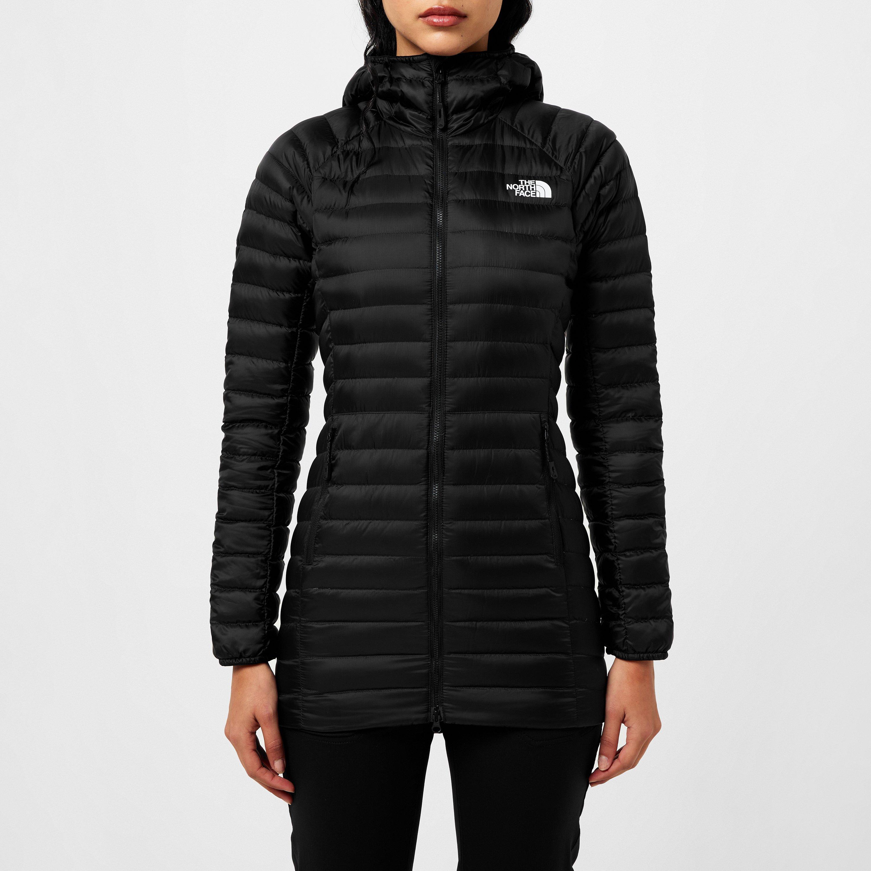 The North Face Trevail Hooded Puffer Coat features a lightweight design with substantial insulation. This winter outerwear is constructed with fill insulation and a water-repellent finish, offering protection from the elements with functional details including a secure hood and fitted cuffs that help insulate against cold air.