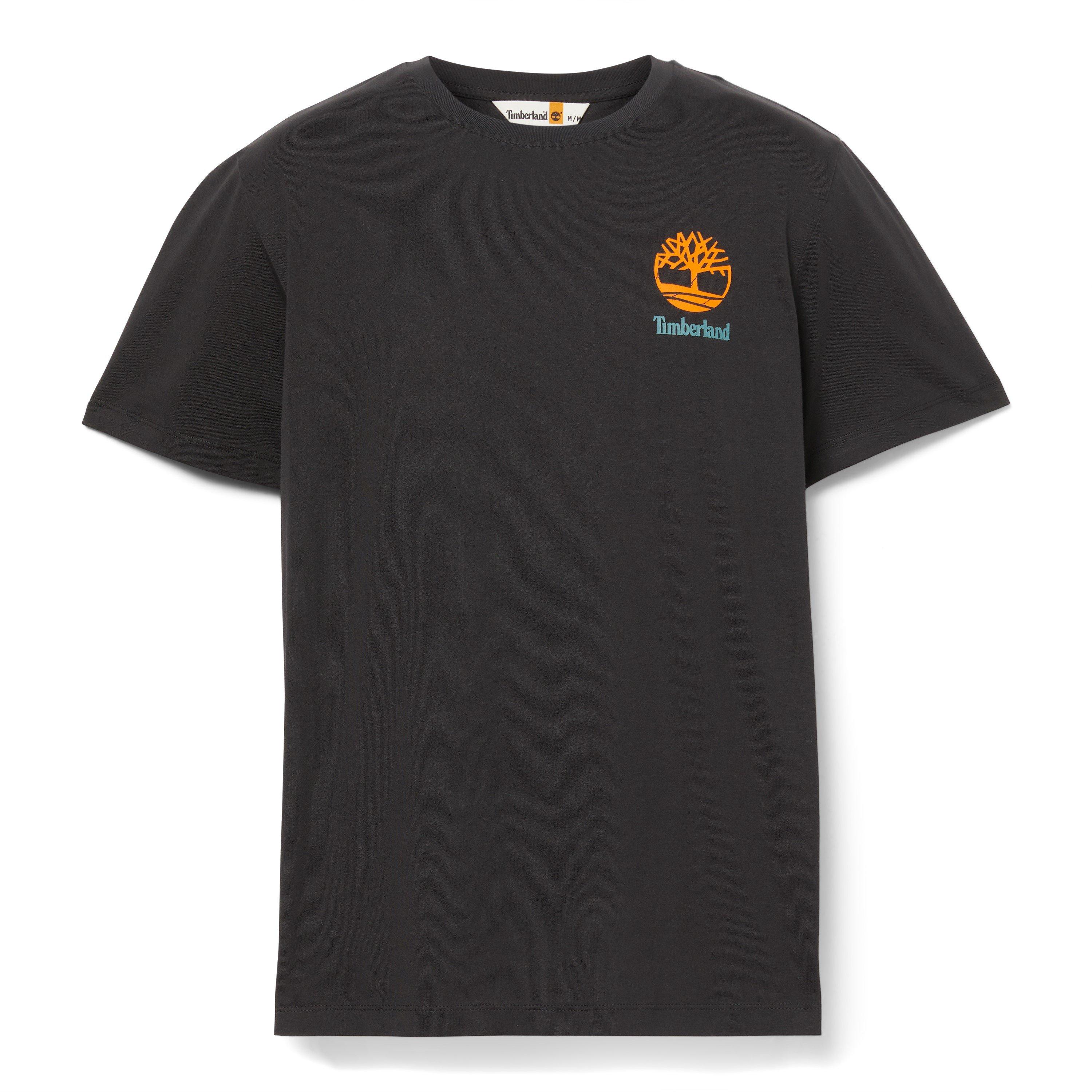 Timberland's Graphic Short-Sleeve Regular Fit T-Shirt balances everyday comfort with outdoor heritage. Clean lines and a relaxed cut ensure easy styling, while the graphic detailing adds a finishing touch.