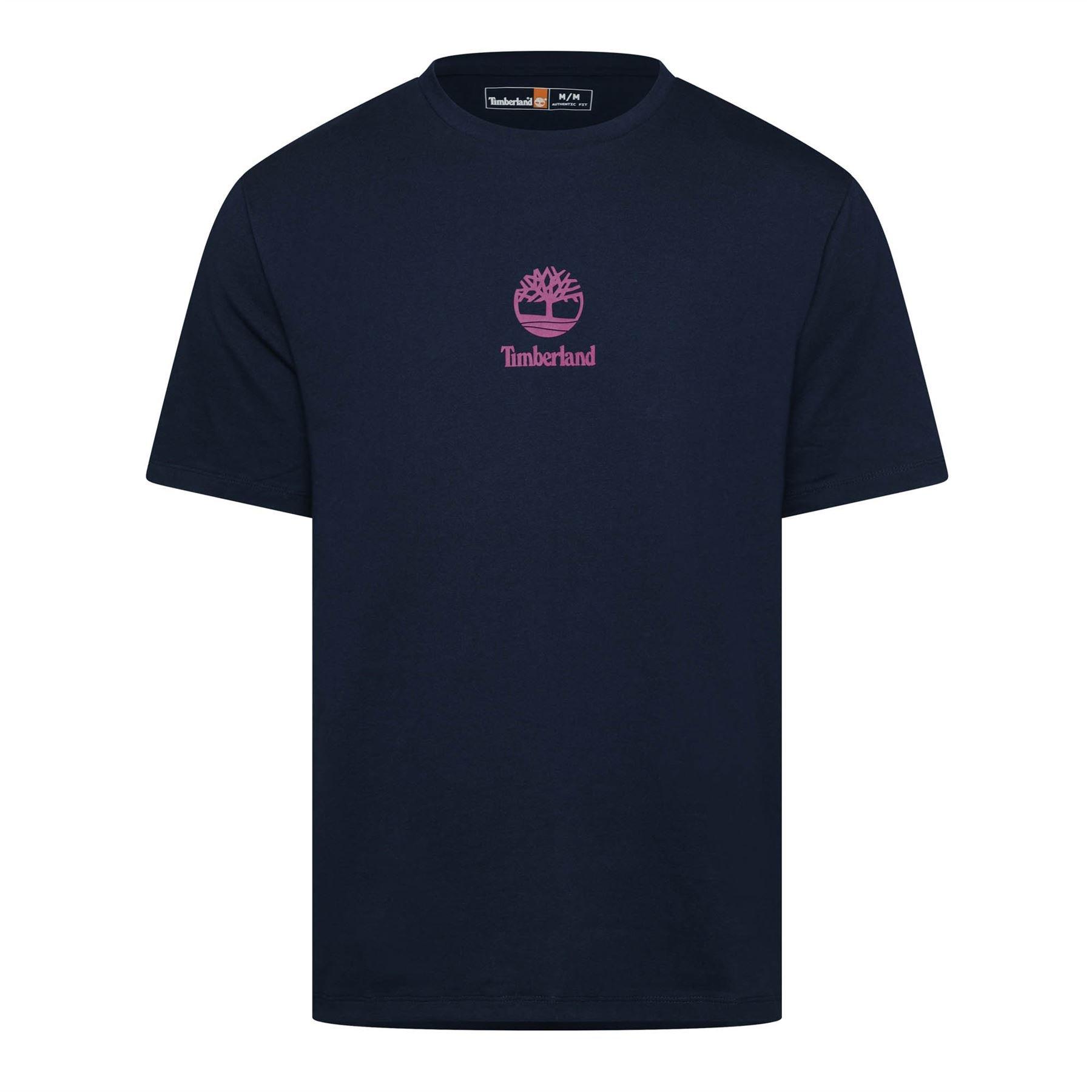 Mens Timberland Print Stack Logo T- Shirt in blue.