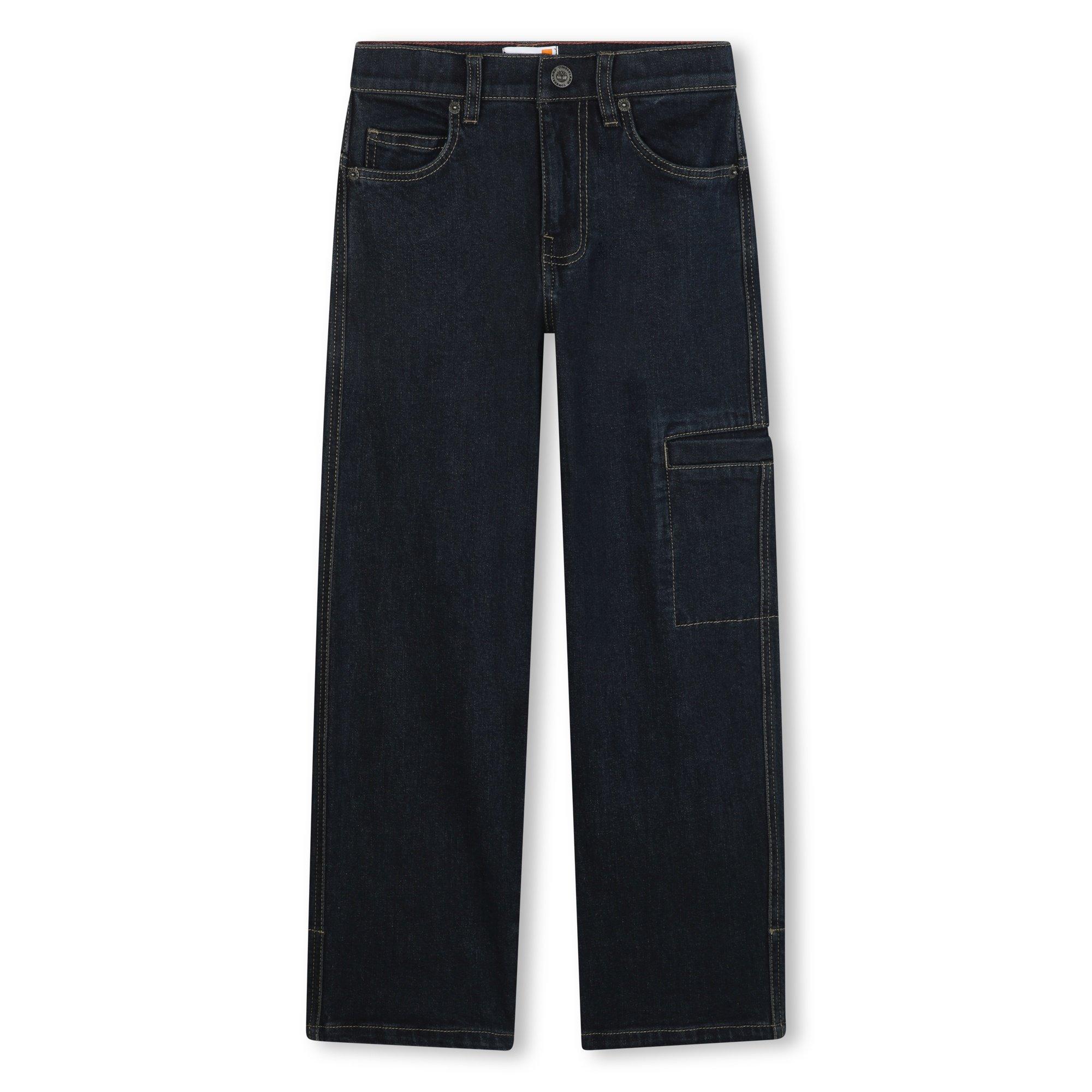 Timberland's Kids' Straight Leg Jeans offer classic style and durability for children. The straight denim cut ensures unrestricted movement while maintaining a structured profile that transitions seamlessly through daily activities for both girl and boy wearers.