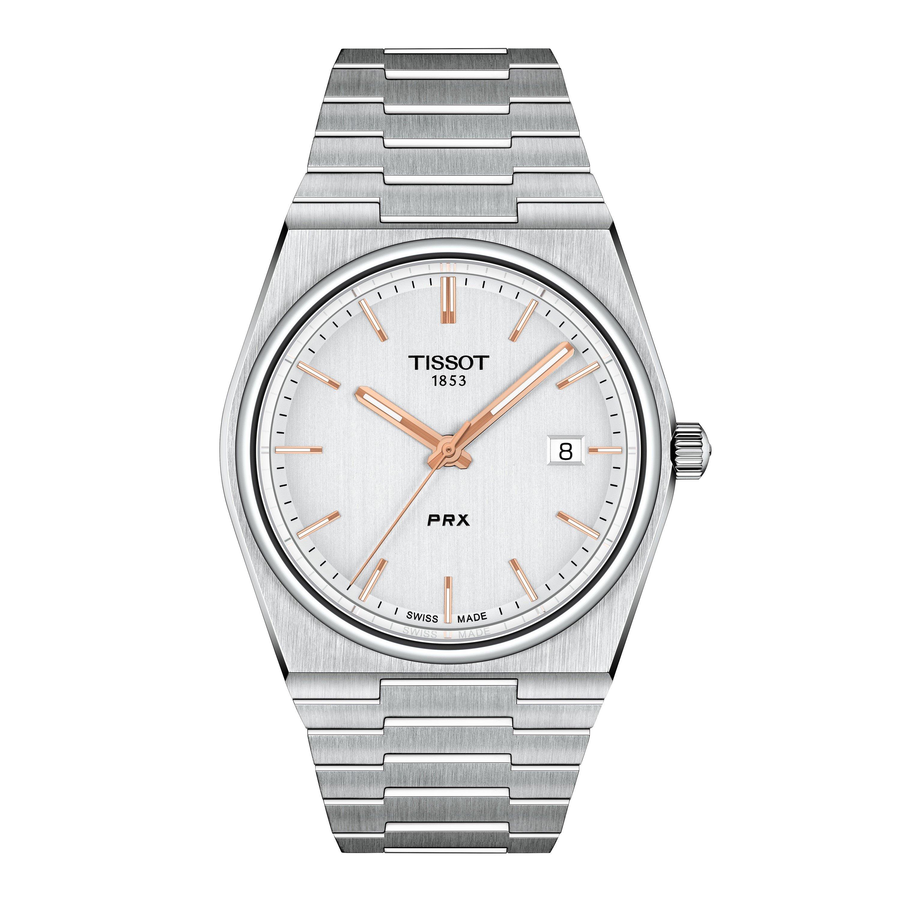 Tissot's Analogue Quartz Timepiece from the PRX line delivers authentic '70s retro aesthetics with modern precision. The slim 40 mm case showcases the brand's 1978 design shape, offering a balance of fashion appeal and classic style.