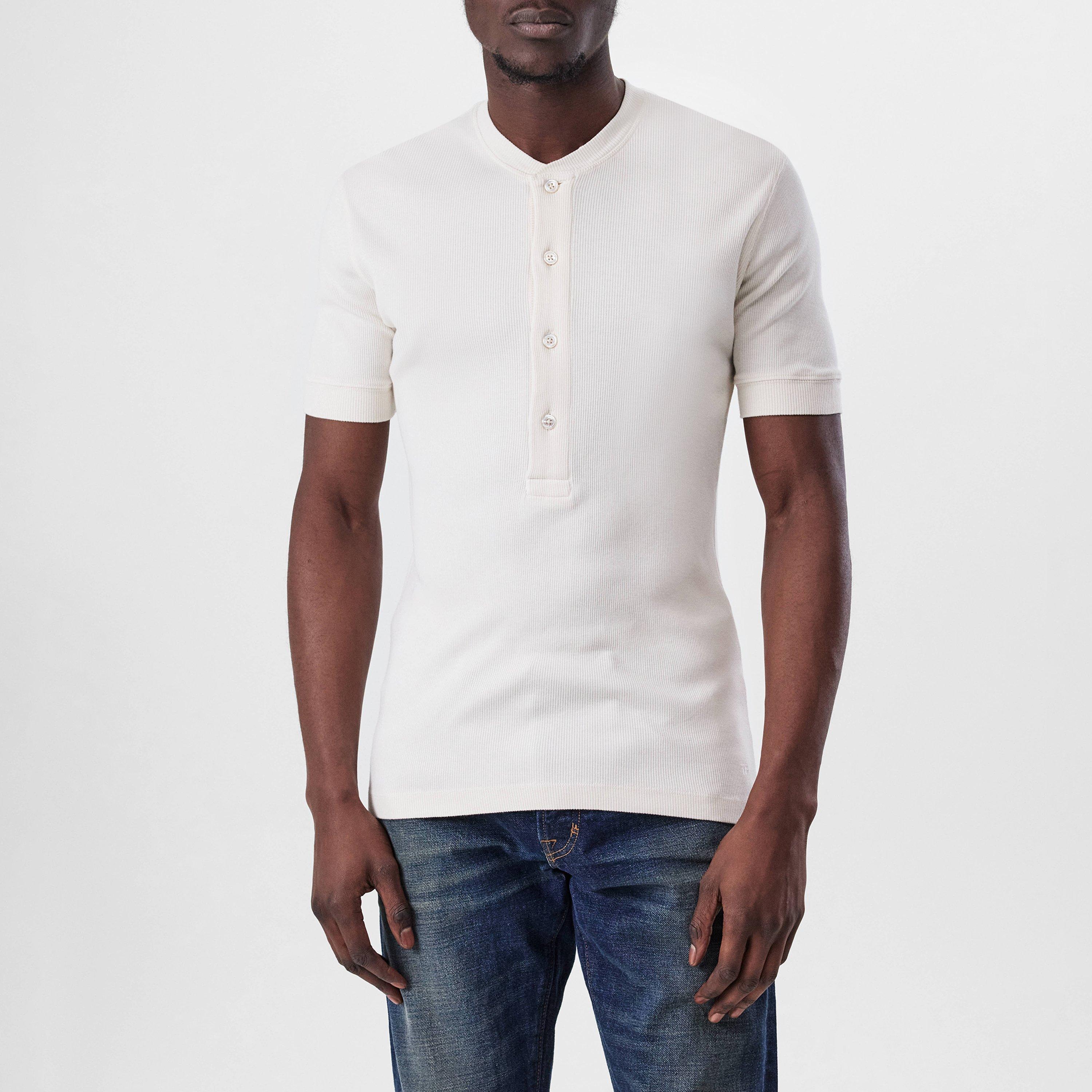 Tom Ford's Ribbed Henley t-shirt offers a masterclass in refined simplicity. This regular-fit men's design combines luxurious comfort with understated elegance, perfectly suited for both smart weekend looks and premium everyday wear.