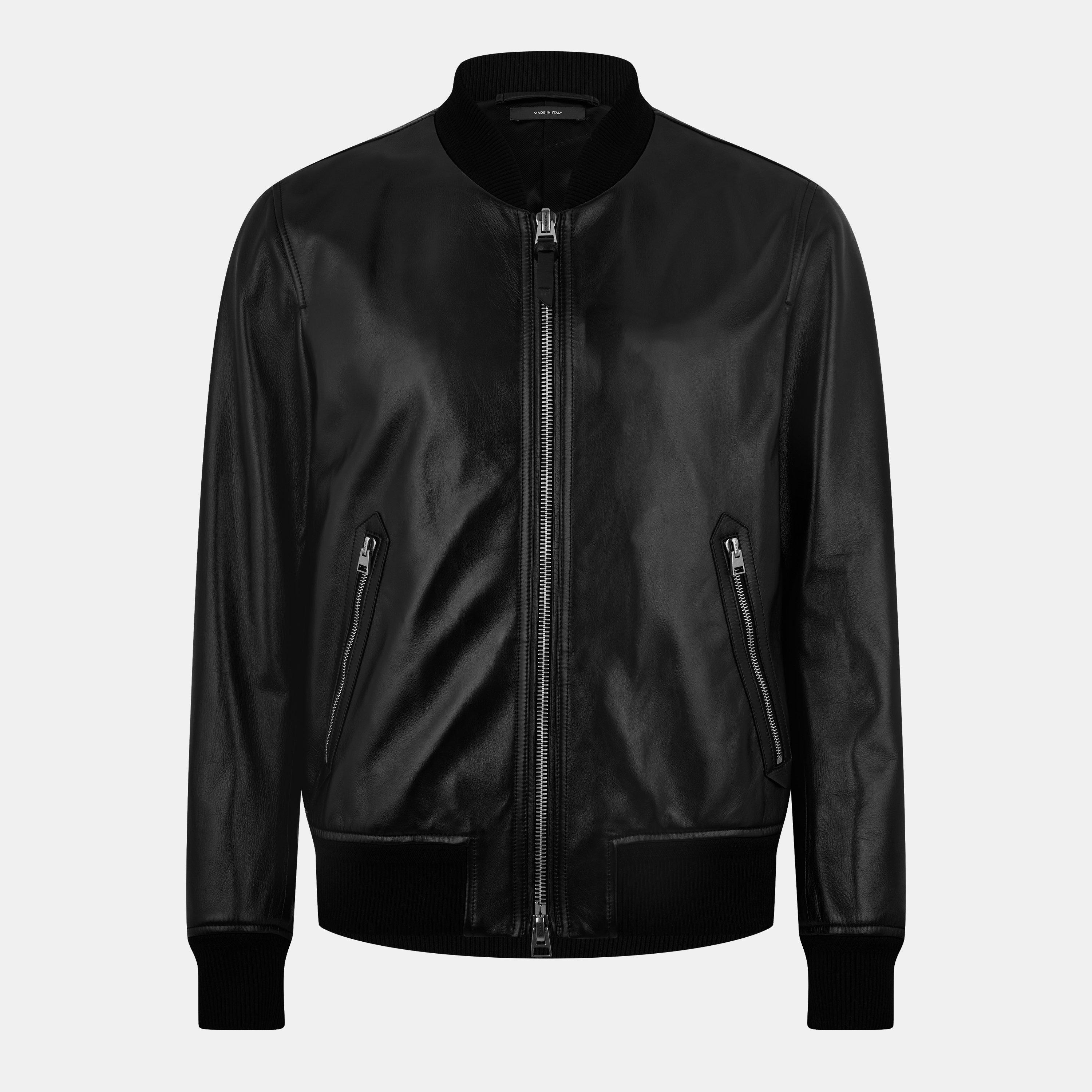 The Tom Ford Long Sleeve Bomber Jacket delivers a smart look with practical functionality. This designer fashion piece features a two-way zip closure and ribbed cuffs and waistband, offering an understated style with thoughtful details including discreet side pockets that maintain its sleek shape - an excellent addition to a contemporary wardrobe.
