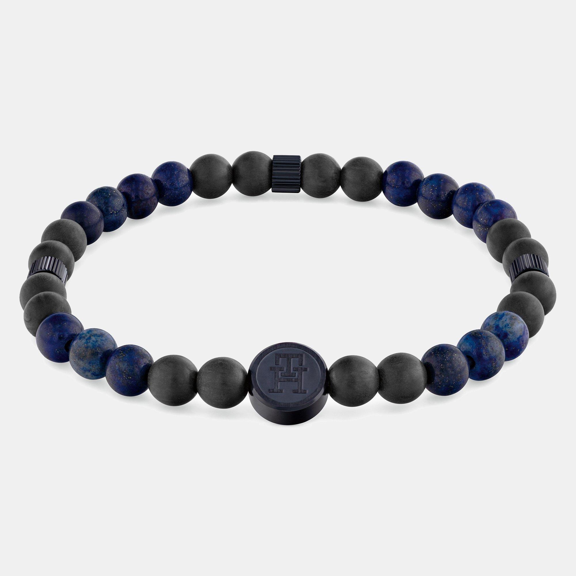 Tommy Hilfiger Mens Black and Blue IP Lapis Carbon Fibre Reinforced Polymer Beaded Bracelet