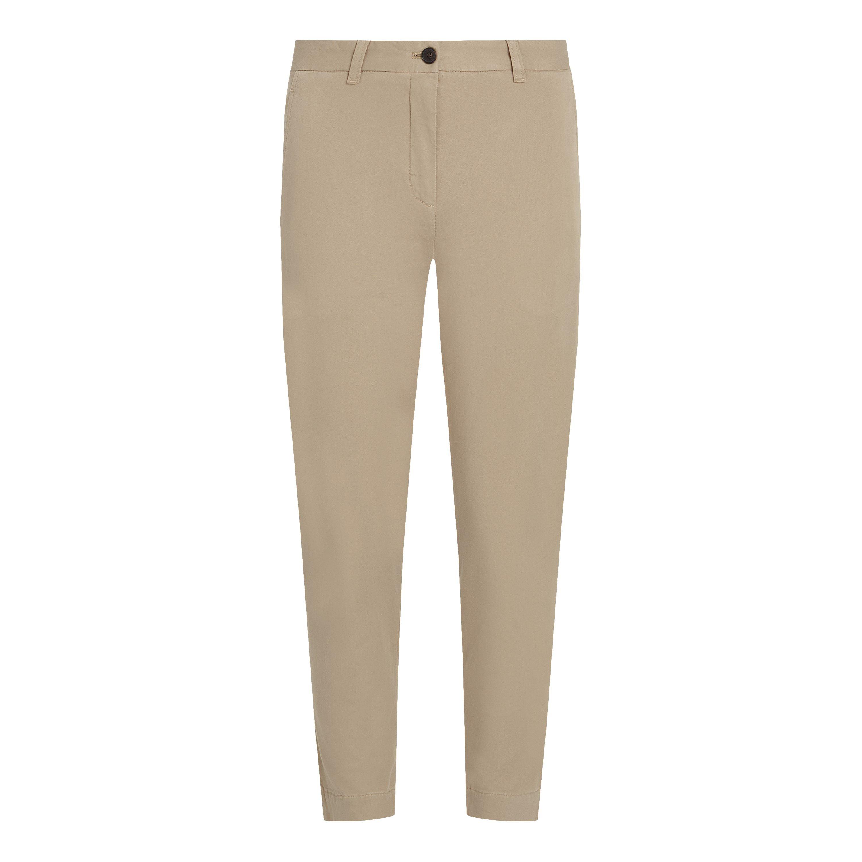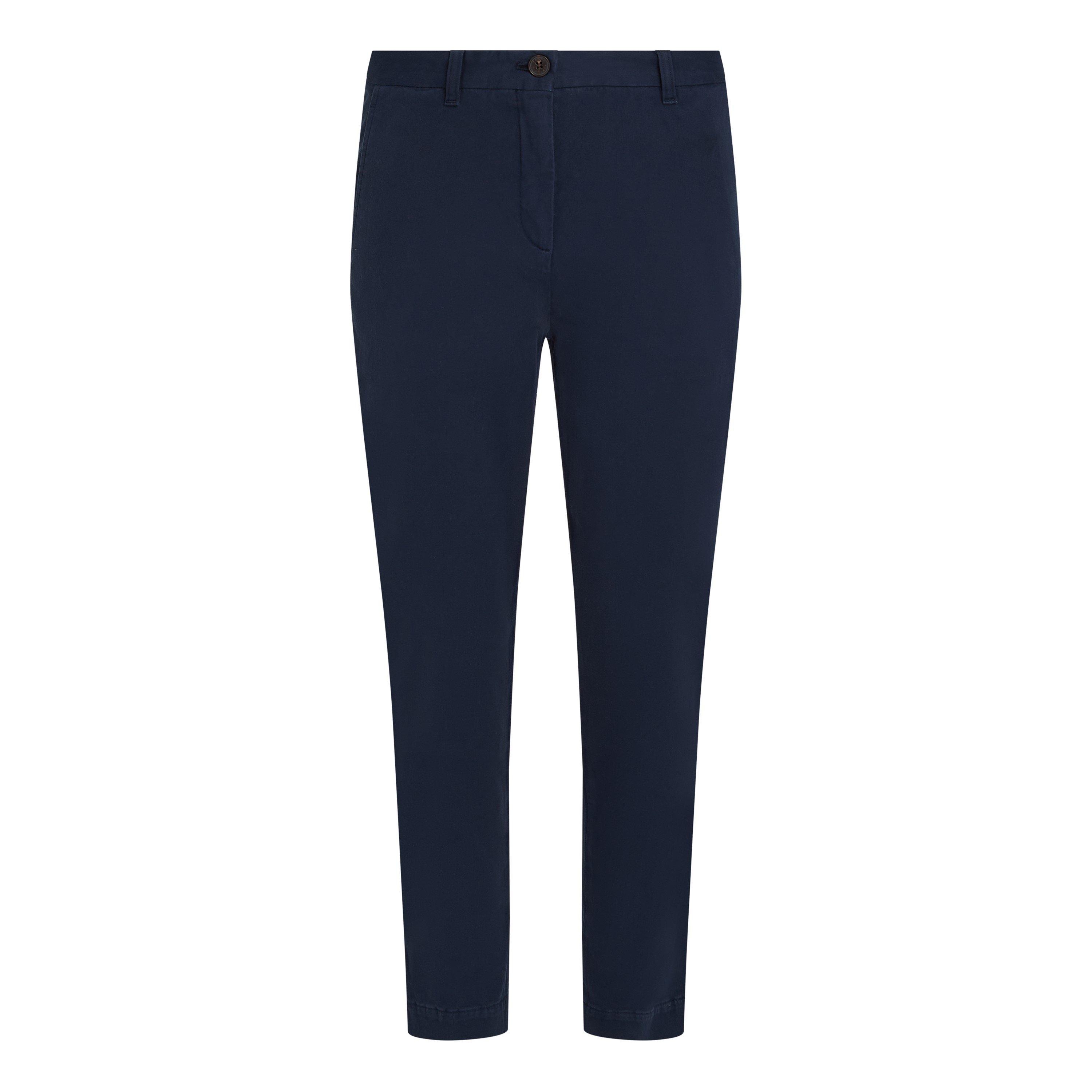Tommy Hilfiger's Women's Stretch Slim Chinos offer adaptable styling with a streamlined look ideal for the modern woman, designed with a flattering slim cut and comfortable stretch fabric that maintains its shape throughout the day.