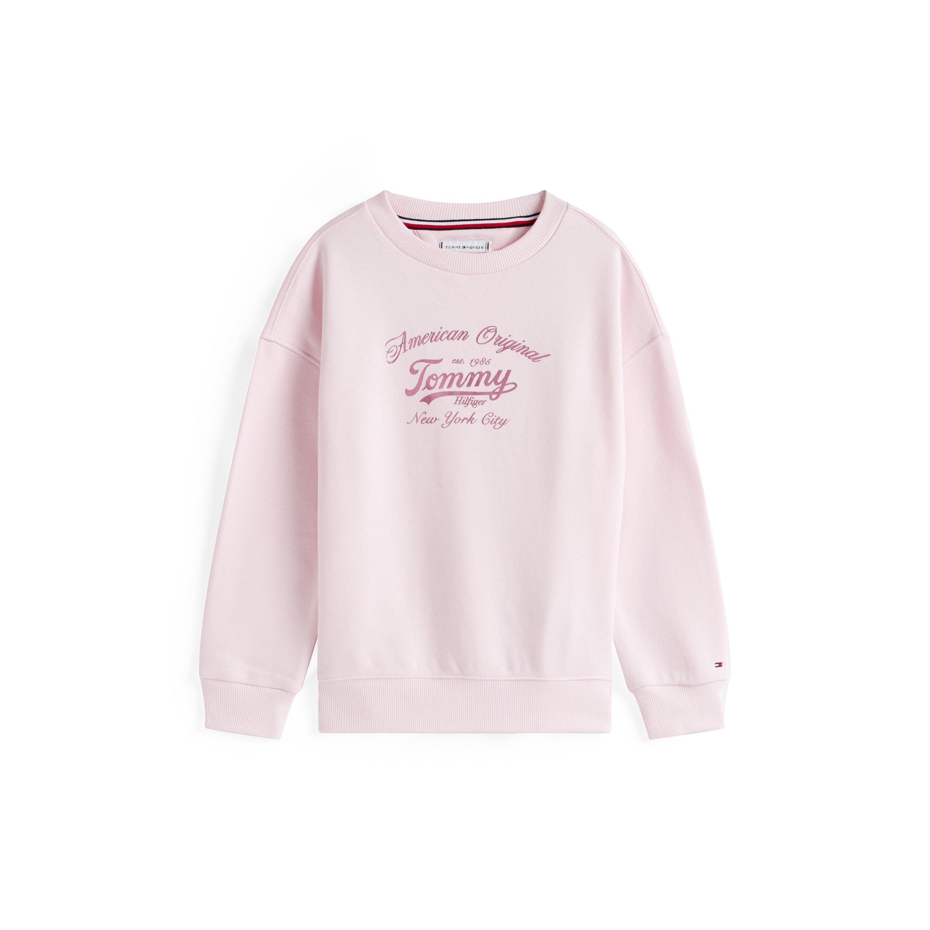 Tommy Hilfiger's Kids' Script Logo Long Sleeve Crew-Neck Sweatshirt features a bold script logo across the chest. Designed with a classic crew-neck design, this sweatshirt brings everyday comfort to casual wear.