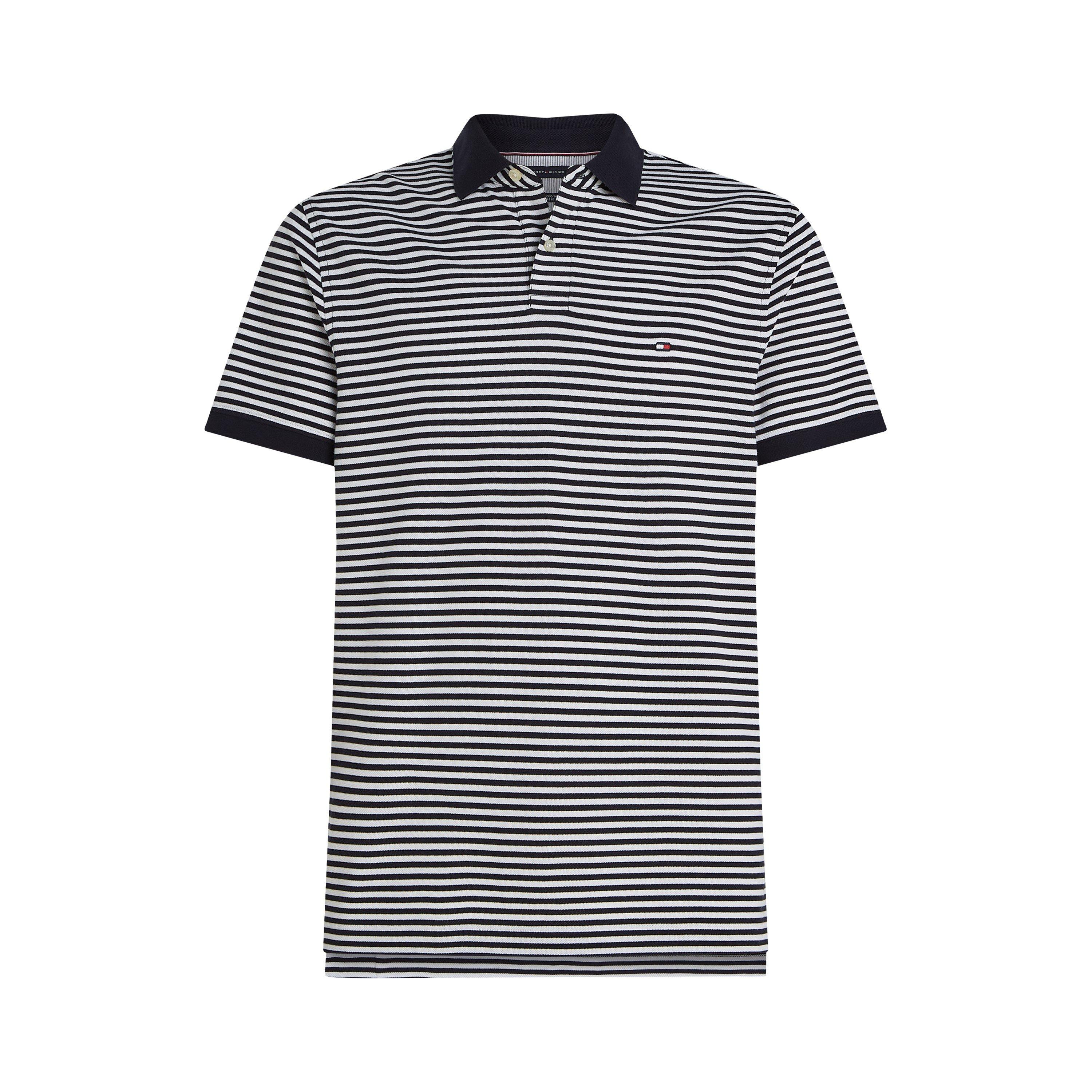 The Tommy Hilfiger Stripe Piqué Short Sleeve Polo Shirt features structured collar detailing with clean stripe patterning. This piece maintains a classic form in breathable piqué fabric.