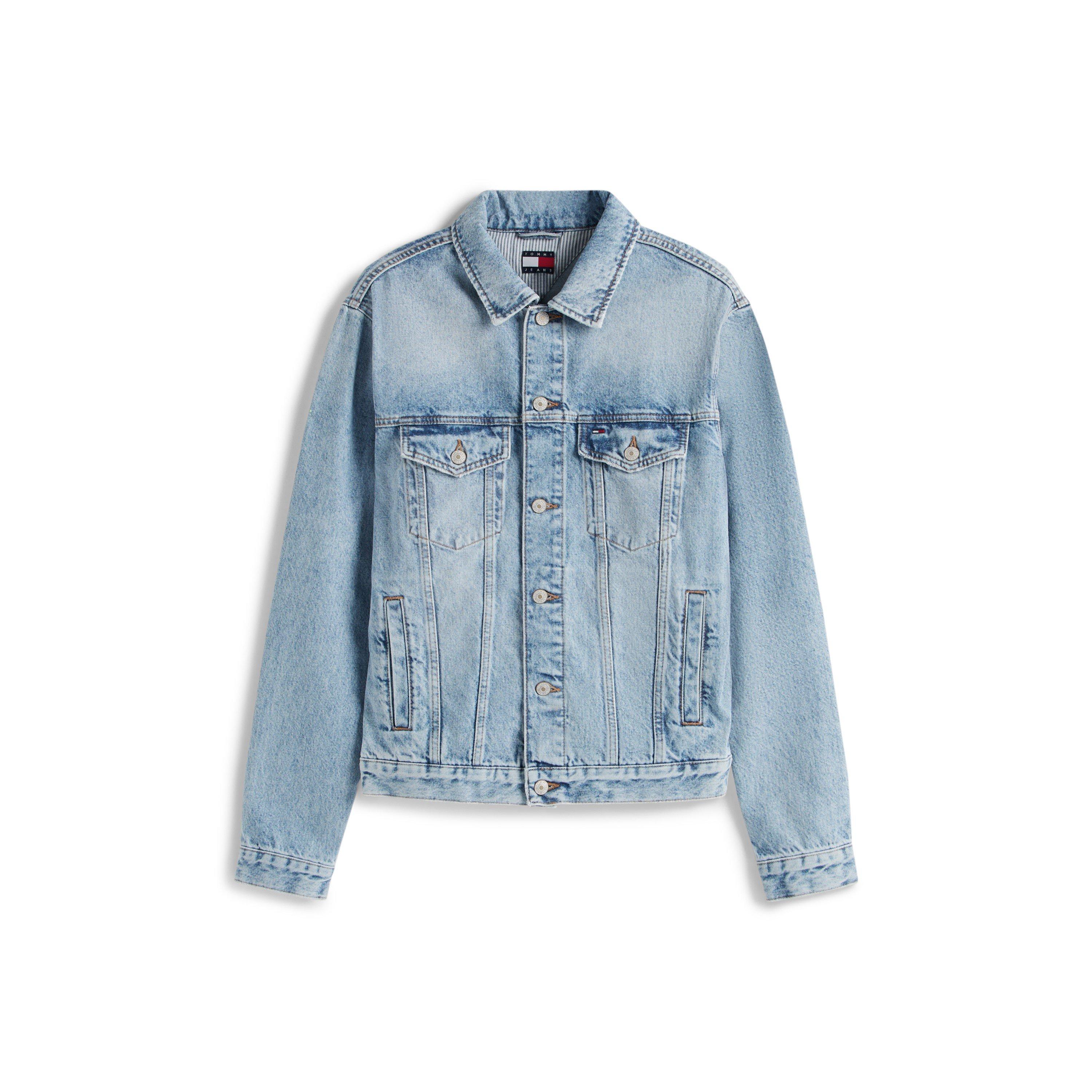The Tommy Jeans Flag Structured Denim Jacket features a classic design with TJ flag branding detail. A casual piece built for everyday wear.