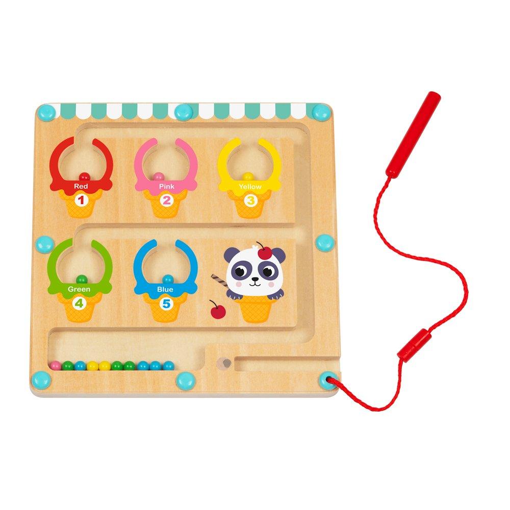 Magnetic Wand for Interactive Play Equipped with a magnetic wand attached by a string, allowing children to guide the colorful balls through the maze into their matching ice cream slots.