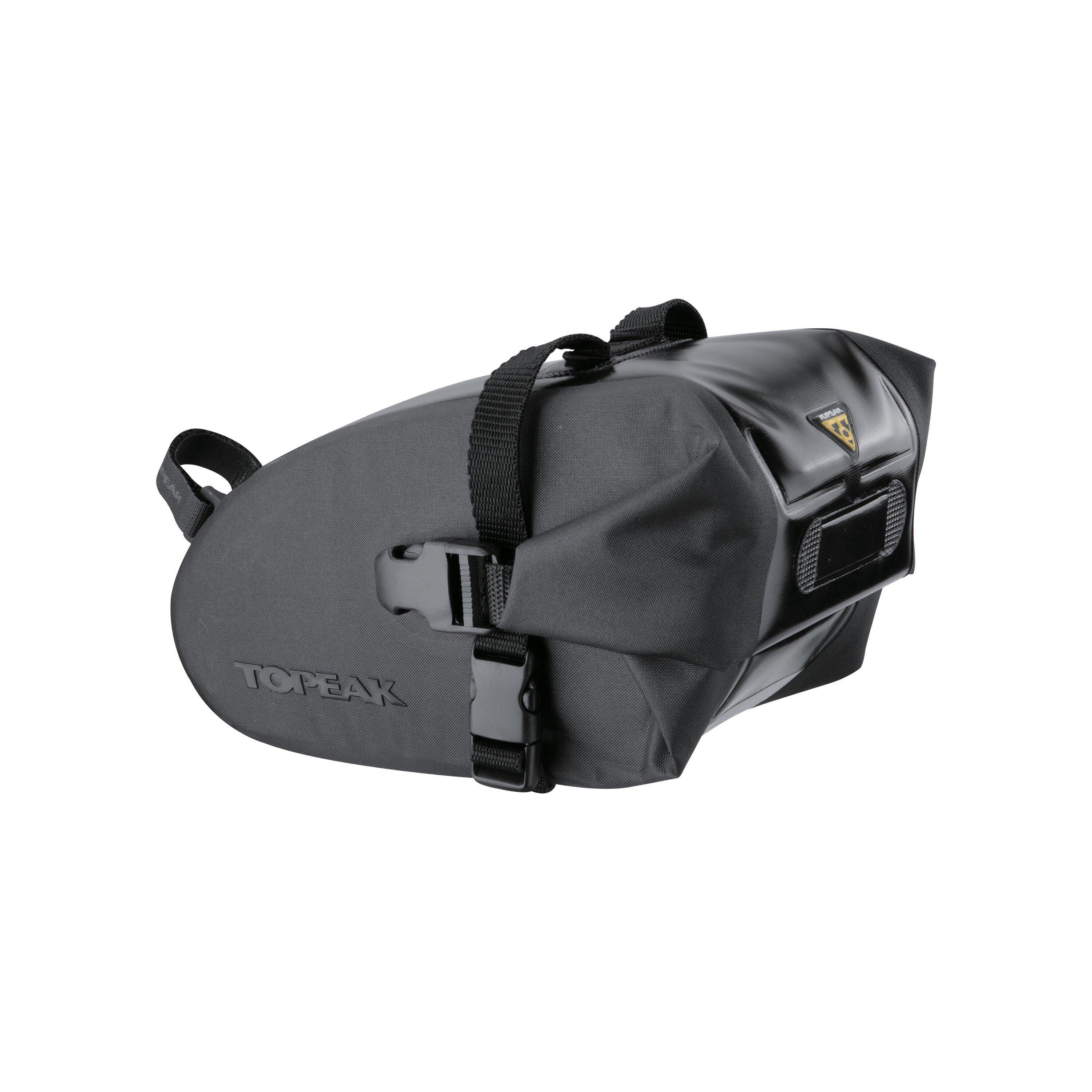 Aerodynamic bag with roll closure. Sonically welded and seam sealed for durable, waterproof protection.