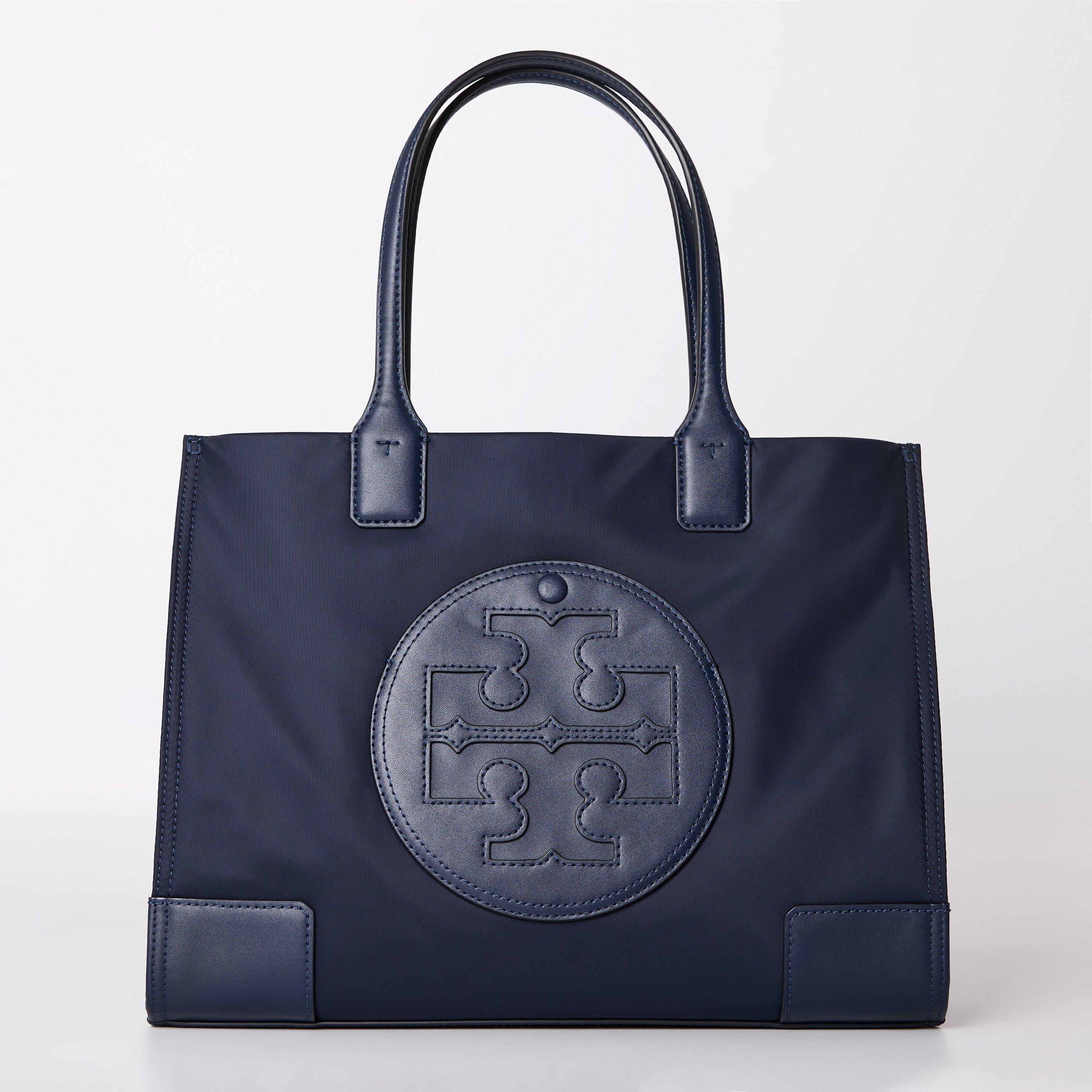 Tory Burch Women's Ella Small Tote Bag offers sleek practicality alongside designer style. The compact handbag features a durable build with the double-T logo prominently displayed, while maintaining enough space for any woman's daily essentials.