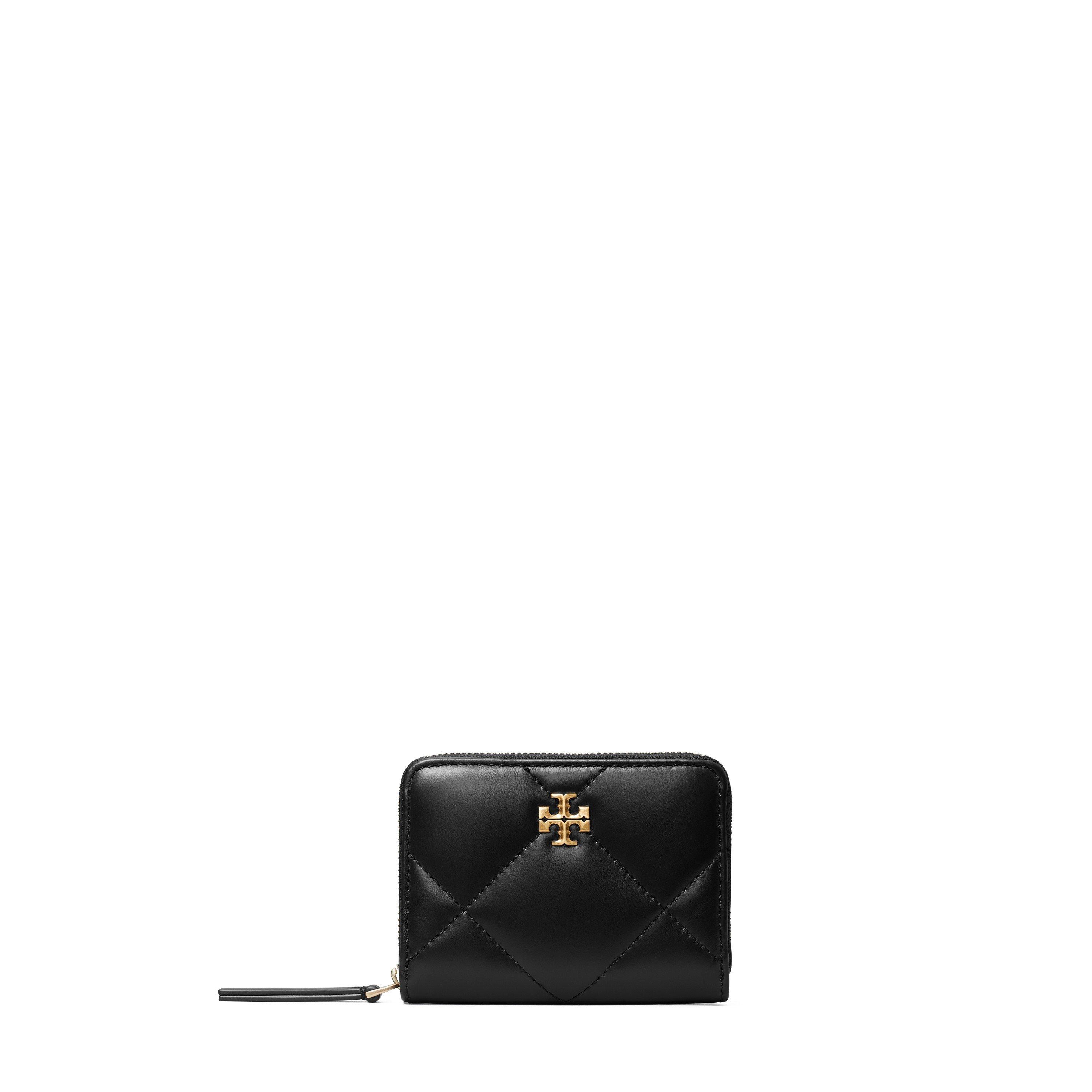 The Tory Burch Kira Zip Around Purse is designed with a compact profile that fits essentials without bulk. Its structured form keeps the shape neat and unobtrusive.