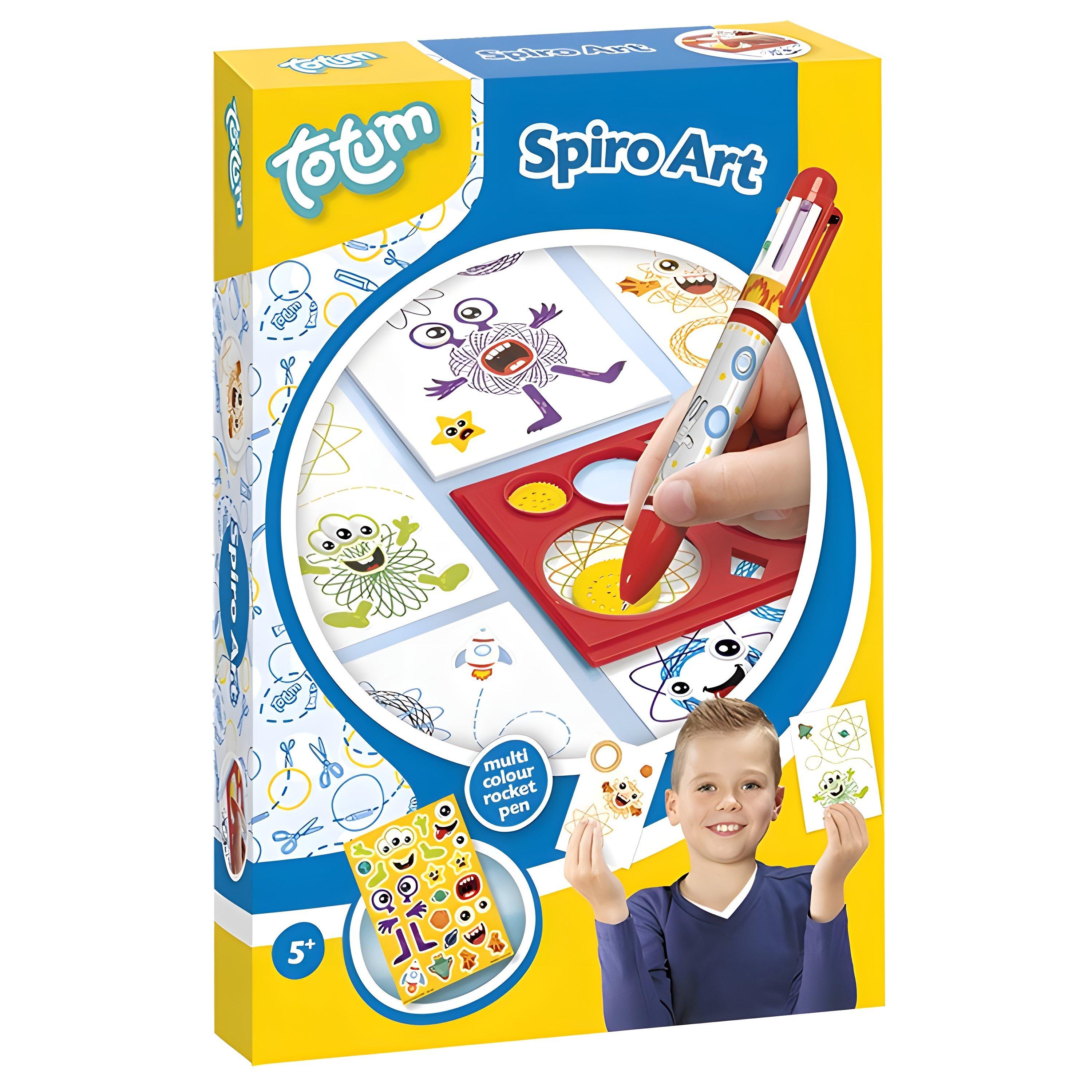 With the Totum Making drawings with spirograph set, children can be endlessly creative. The spirograph is a classic drawing instrument that can be used to create beautiful geometric shapes and patterns. By simply placing a pencil or marker in one of the gears and turning it, unique and colorful drawings are created. The set contains several gears in various sizes and shapes, so that plenty of variation is possible. Children can create their own works of art or get inspiration from the included examples. The Totum Drawing Drawings with Spirograph set stimulates children's fine motor skills, creativity and concentration. An ideal gift for young budding artists!