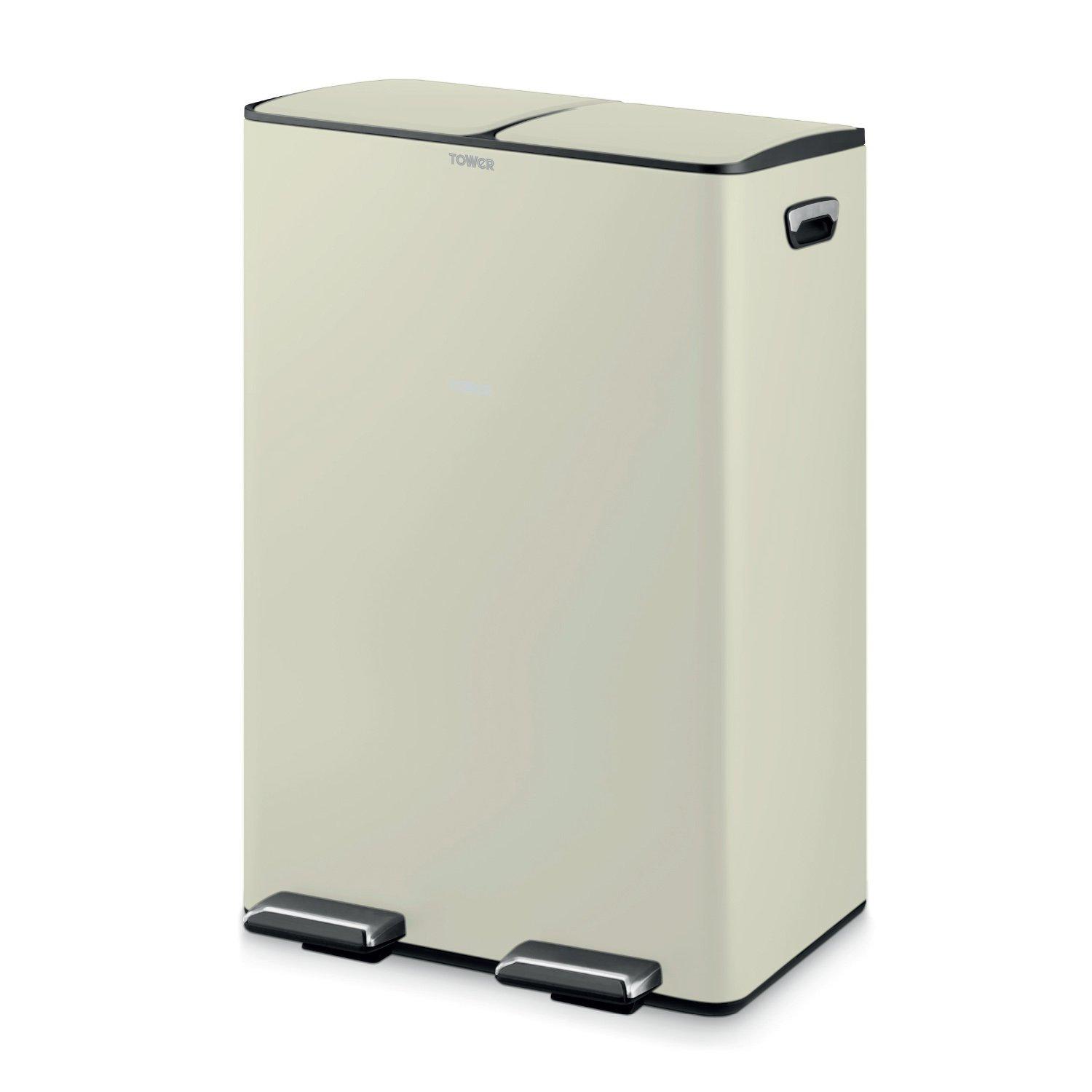 Hygienically dispose of your household waste with the 60L Pedal Recycling Bin from Tower. It features a pedal opening system to pop the lid open with ease, perfect for hygienic and hands-free opening. The spacious capacity is ideal for busy households and provides plenty of space to dispose of waste, ensuring you wont have to constantly empty the bin. Expertly constructed from strong and durable carbon steel, the bin is robust in order to withstand the rigours of a busy household, whilst the carbon steel body has a stylish forest green powder coating that perfectly complements both modern and traditional dcor. Two individual 30L compartments provide the capacity for easy waste disposal and the buckets are easily removable. A simple wipe clean is all that is needed to keep the bin looking its best, whilst the inner buckets can be easily removed for convenient cleaning.