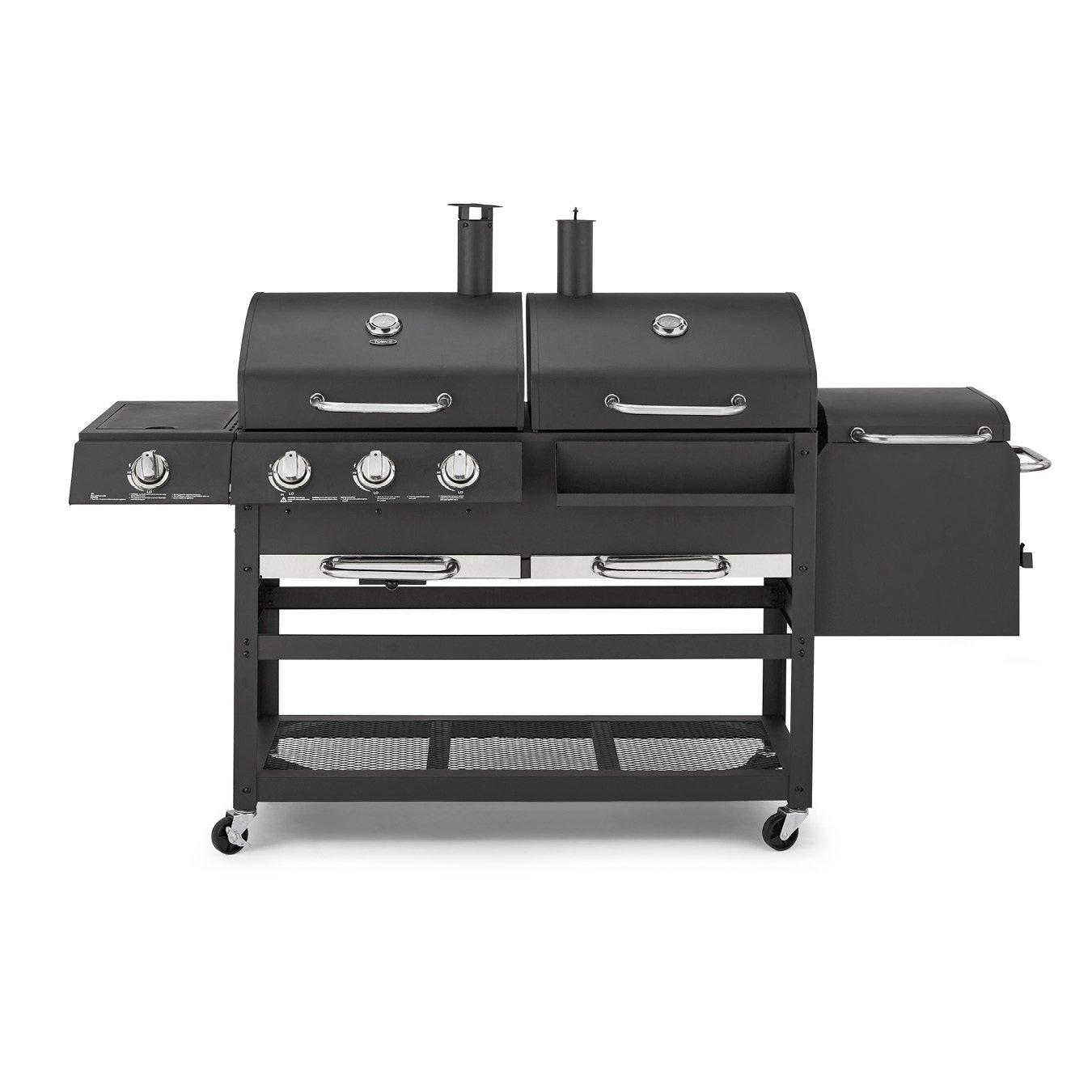 The Tower Ignite Multi XL combines gas, a multi-height charcoal grill, smoker barbecue and a side burner for grilling a wide range of meats in different and delicious ways. The 3 burner grill provides a big surface area for cooking larger portions of food for friends and family. A heat resistant steel body provides added durability at higher temperatures for cooking different meats. Included is a large capacity multi-functional smoker box that stores wood chunks or smoking chips to slowly release the rich smoked flavour to meats. The base shelf provides additional storage space for condiments and other accessories. Four wheels give the BBQ added stability and easy portability. Takes two people to assemble it in just under an hour.