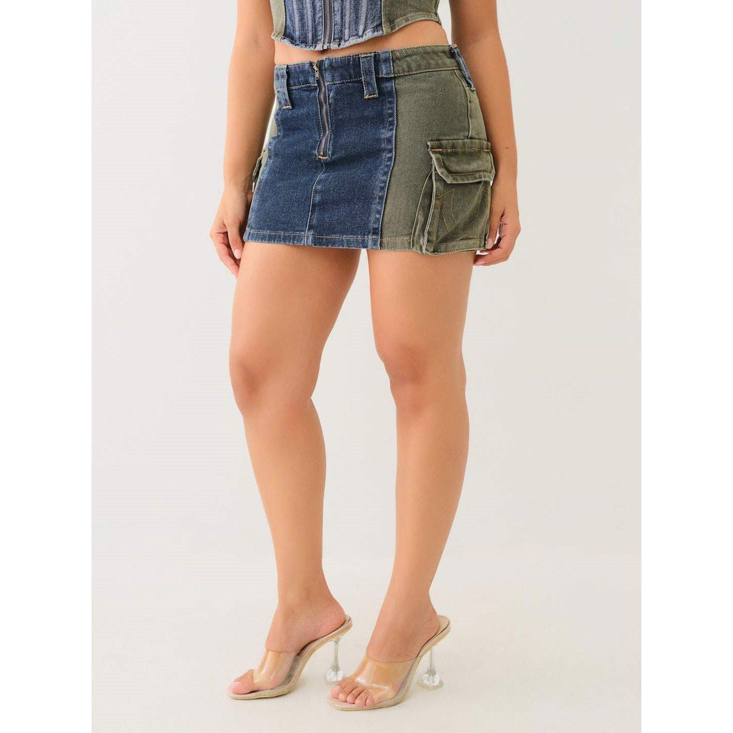 True Religion Women's Colour Block Mini Denim Skirt