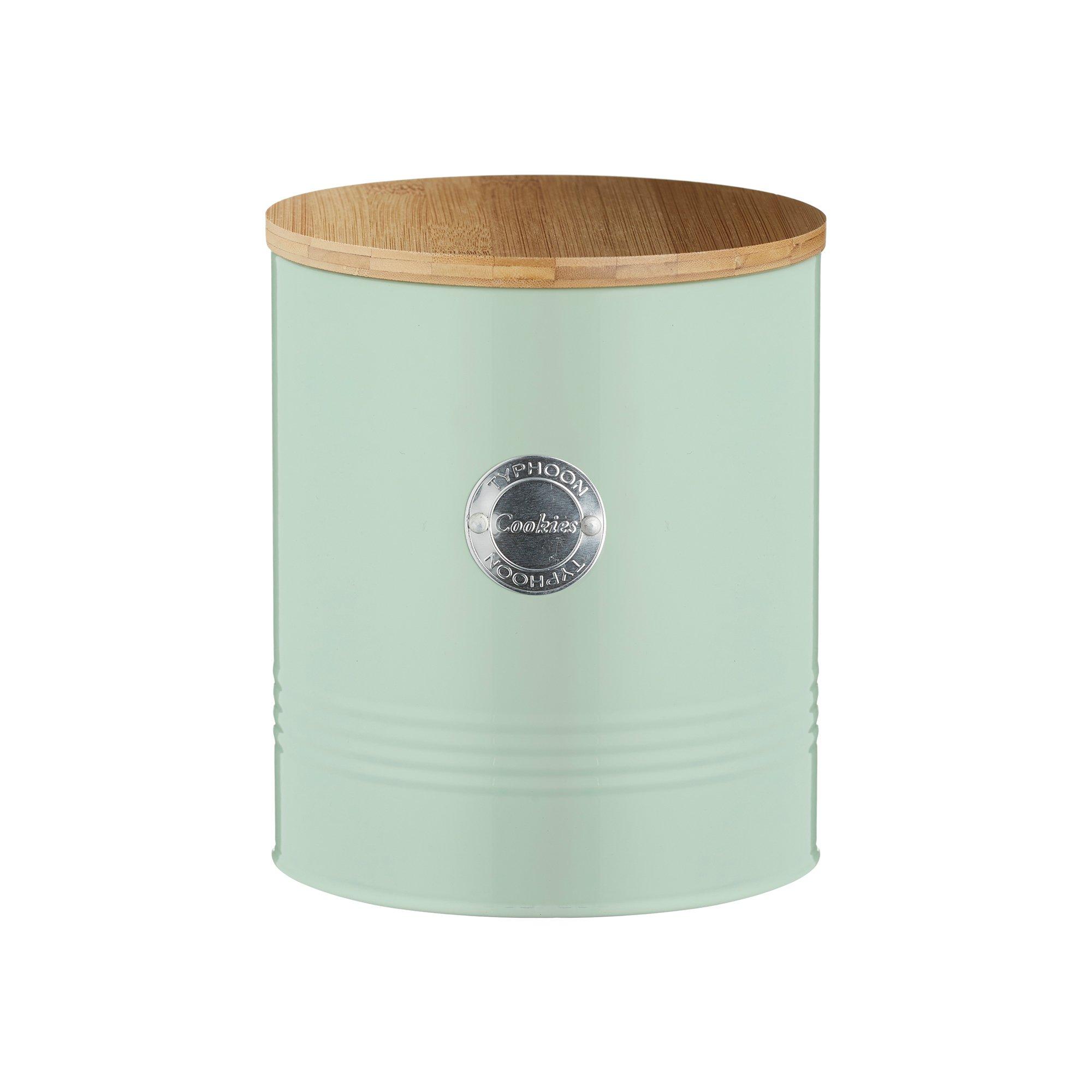 Typhoon Living cookie jar is a generous 3.4 litres which makes it perfect for storing baked goodies. The Typhoon sage Living range is a beautiful pastel tone which will complement any counter top. The sage green is perfectly paired with a silver ;cookies; badge which will keep your worktop organised and neat. The cookie jar is made from coated steel which is durable and resilient, but also lightweight which is perfect for everyday use. The Typhoon Living biscuit storage has an airtight seal to keep the contents fresh, and also a sustainably sourced bamboo lid.