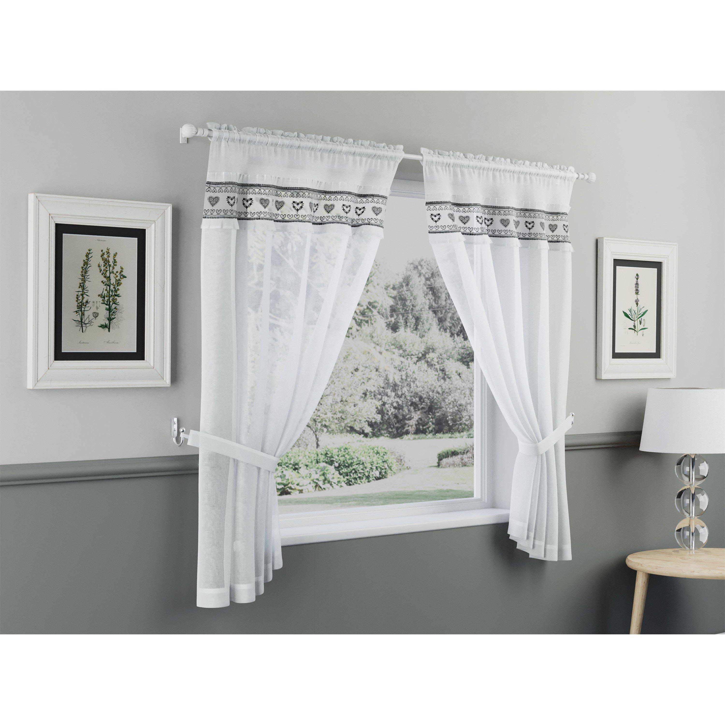 This window set includes a pair of curtains with matching tie backs, offering a coordinated look for your windows. It's a convenient and stylish way to enhance your decor effortlessly.