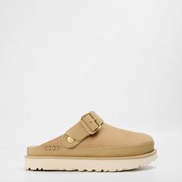 Discover the epitome of summer chic with our exclusive collection of UGG Sandals & Clogs. Elevate your warm-weather wardrobe with our range featuring strappy styles and slip-on options, crafted for both comfort and style. Embrace timeless elegance with UGG Golddenstar Clogs in classic beige tones, or opt for a sleek and versatile look with the Goldcoast line's black hues. For those craving a pop of colour, opt for a pair of UGG sliders in vibrant pink to make a bold statement. Whether you're strolling along the beach or enjoying a day out in the city, our collection offers the perfect blend of fashion and function. Shop now and step into summer with confidence and flair wear our range of UGG sandals.