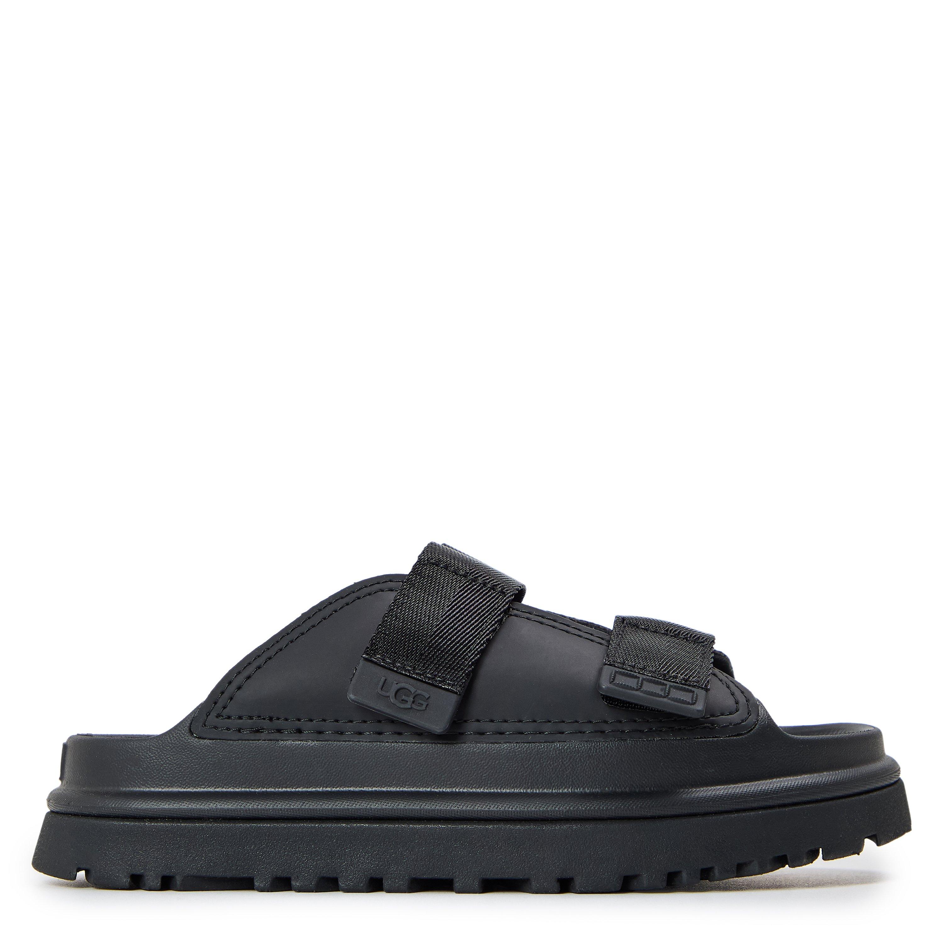 The Ugg Goldenglow Slide is built for comfortable wear with a flatform base that adds height while maintaining stability. Its slip-on design makes transitioning between activities simple and quick.