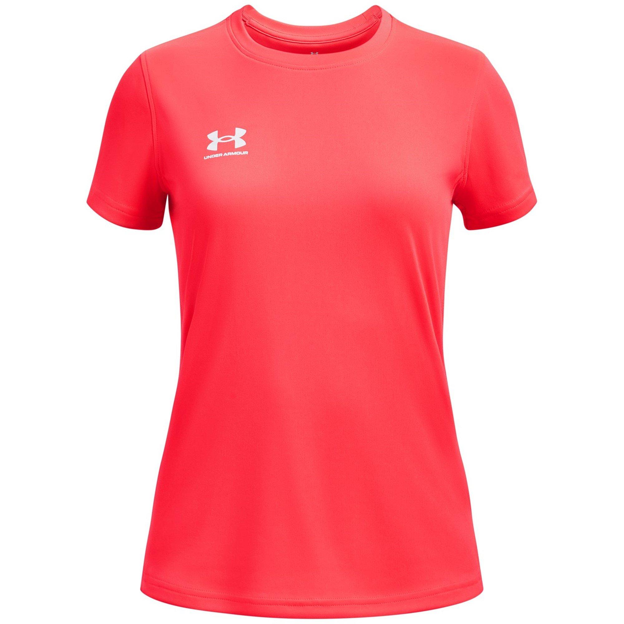 The Kids' Short-Sleeve Performance T-Shirt from Under Armour balances technical fabric with essential breathability in an athletic design. This sport tee features moisture-wicking technology for comfort in a durable design made for the active young wearer. The lightweight fabric offers unrestricted movement while providing essential breathability throughout active pursuits for children and youth.