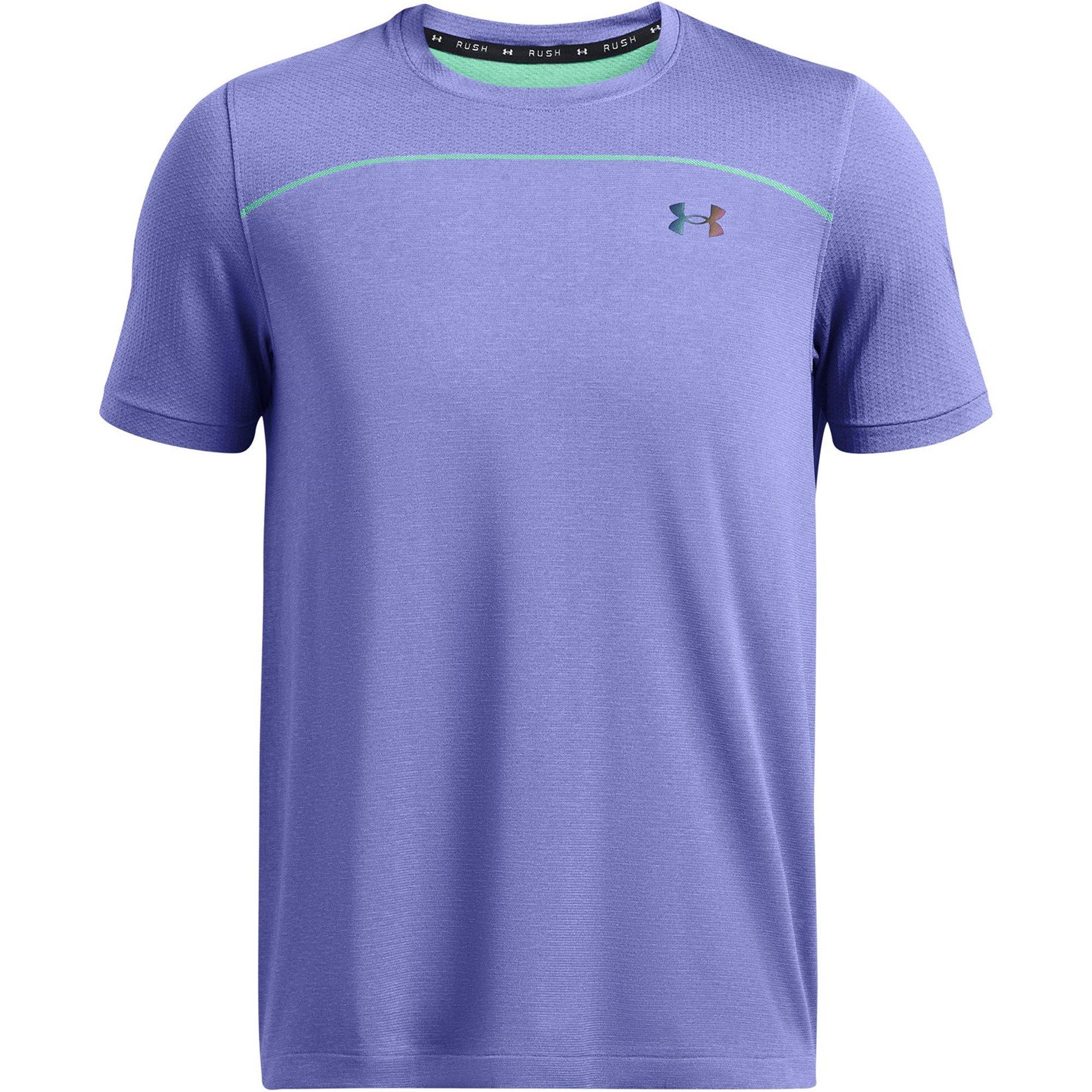 The Rush Seamless Short-Sleeve from Under Armour offers a close fit. This breathable workout T-shirt design is seamless, enabling fluid movement during activity. With clean lines and thoughtful design, it's excellent athletic gear and training wear for athletes who value sport functionality and fitness performance. This compression T-shirt balances style with performance elements, making it ideal exercise apparel.