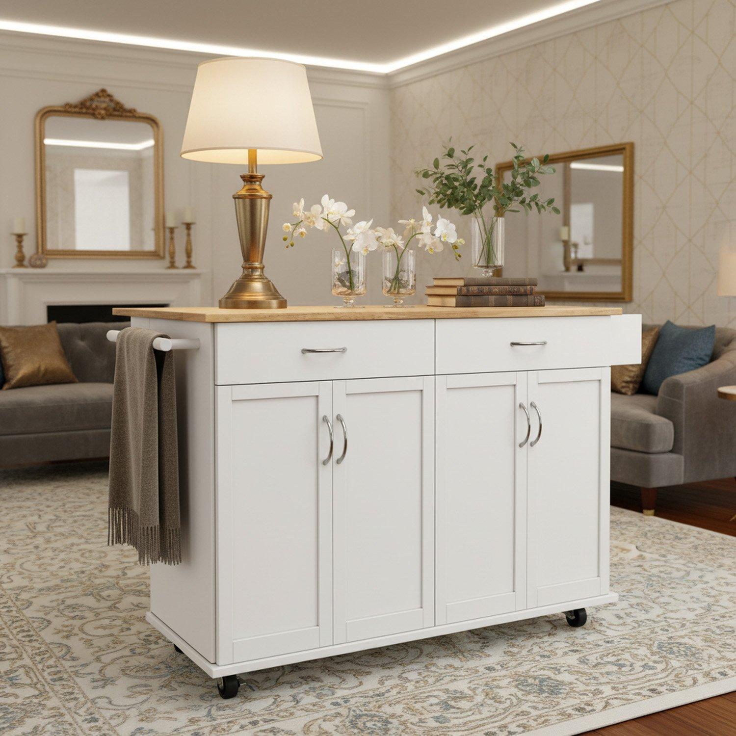 Ample Storage: Organize dineware with two drawers. Durable Design: High-quality wood ensures longevity. Specifications: Measures 128x50x90.5cm for compact spaces.