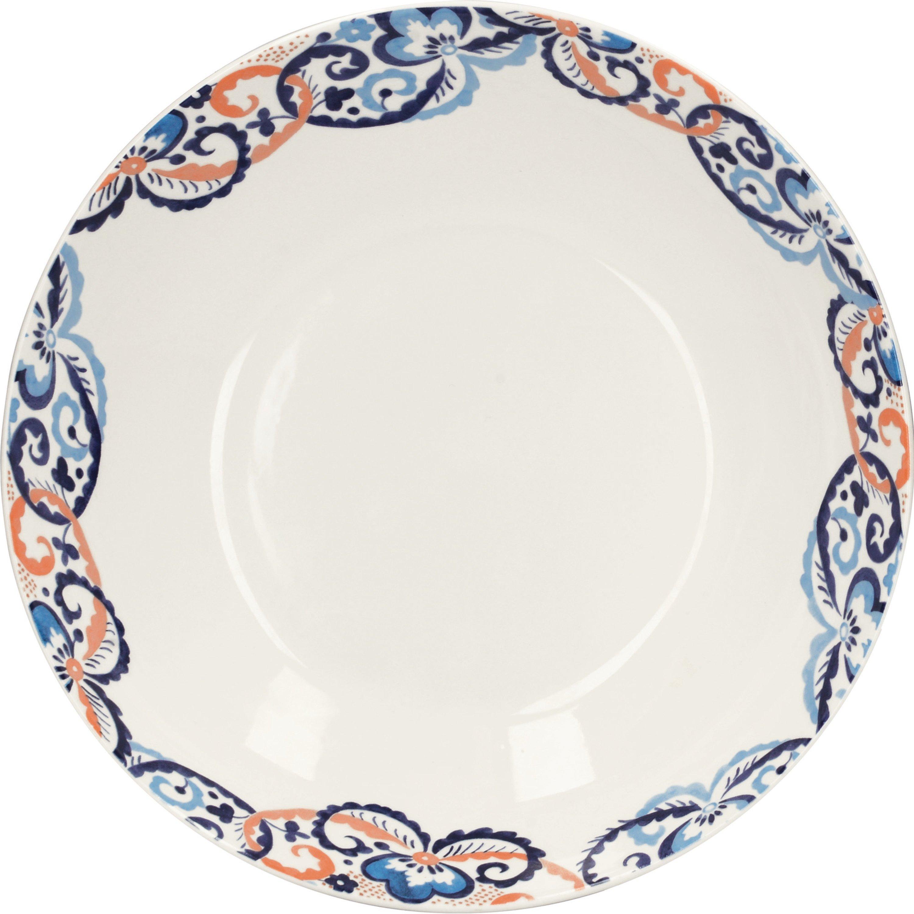 Take in and admire the elaborate floral patterns of V&A's Rococo Silk collection every time you take a seat at the dining table. This stunning dinnerware collection commemorates the woven silk designs of influential textile designer, Anna Maria Garthwaite. These patterns see vibrant blue and rich terracotta-coloured sprigs of flowers gently curl, curve and unfurl across clean white backdrops. With its inspirational display of iconic design work, this patterned pasta bowl set is ideal for any dining occasion: be it when you're formally entertaining friends, or simply relaxing with an indulgent dessert after a long day. Each of these white pasta bowls is made of fine china, which is strong enough for daily use in your home and beautiful to look at.