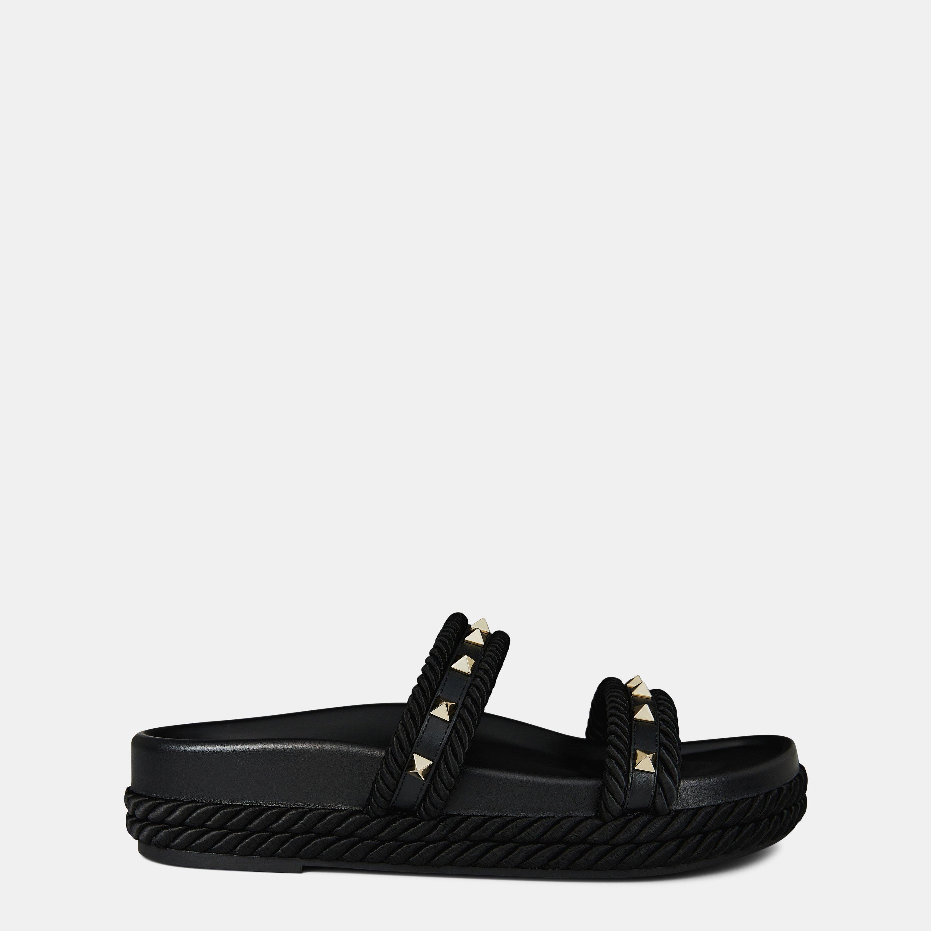 Elevate every step with Valentino Garavani's Rockstud Sandals, a brand known for its impeccable craftsmanship, and timeless elegance. Adorned with the signature rockstud design on the straps, boasting a bold statement wherever you go. Perfect for summer strolls or beachside soirées, these slides seamlessly blend high fashion and edgy sophistication.