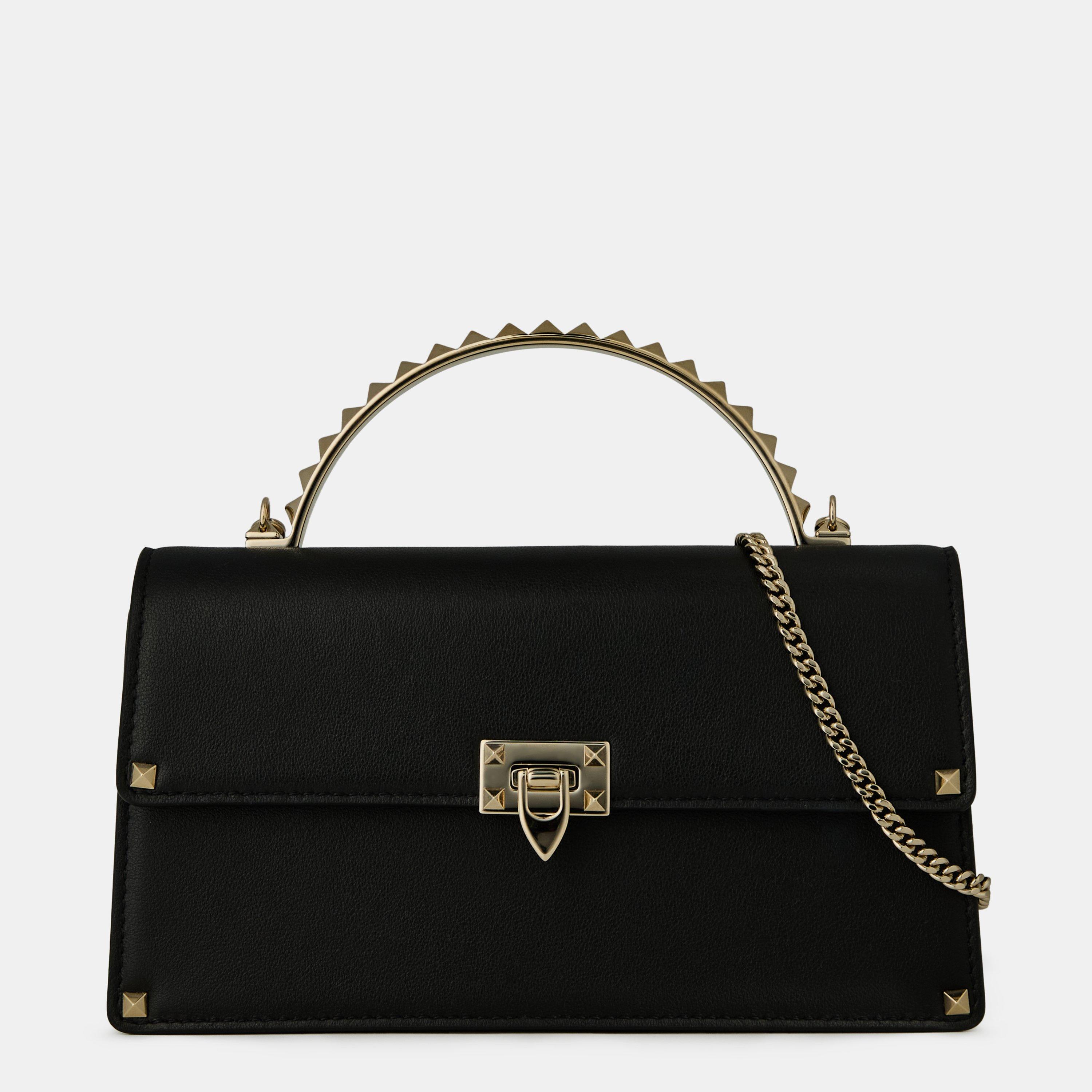 Valentino Garavani's designer crossbody bag offers a bold design, featuring a structured shape with secure clasp closure and metal chain strap.