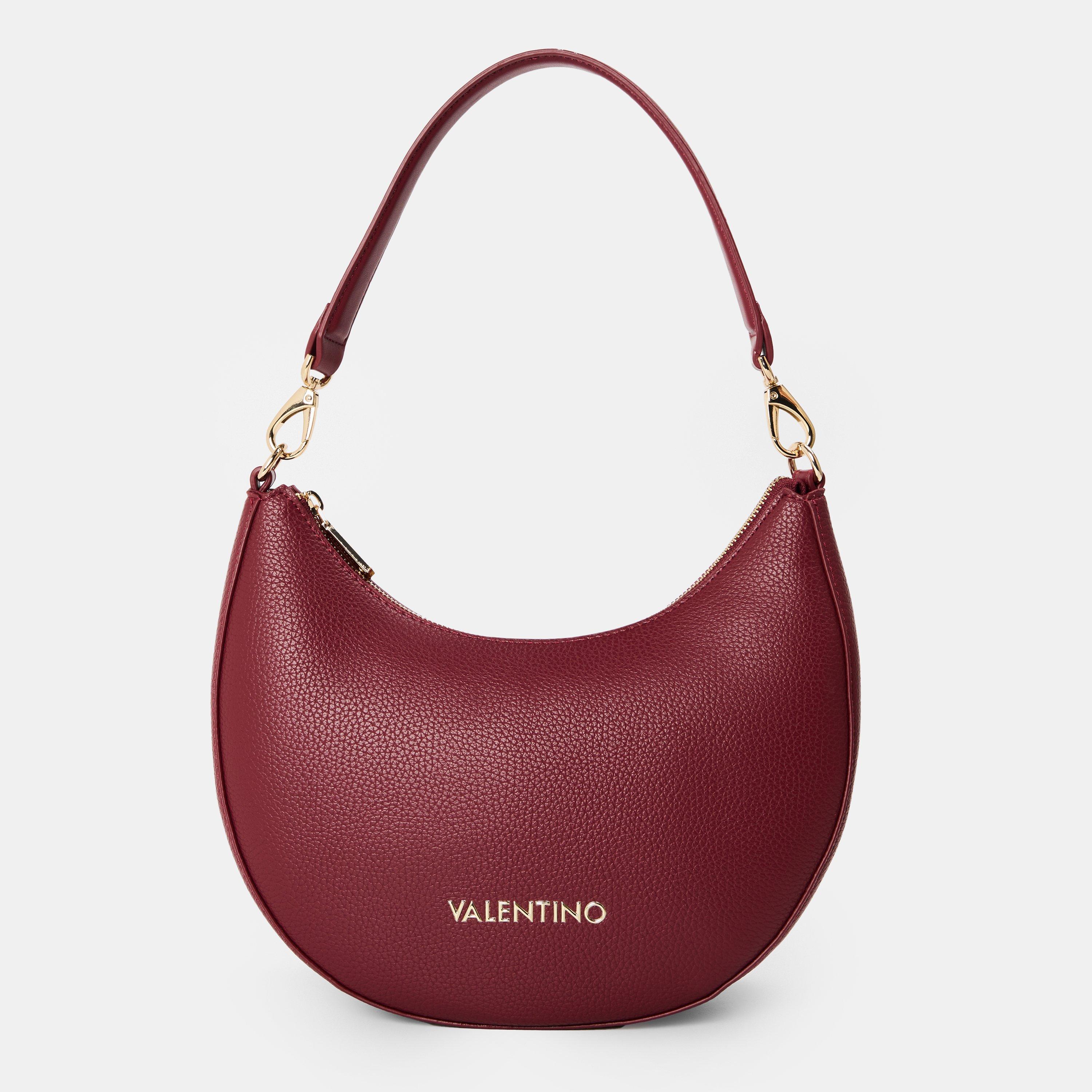 Valentino's hobo bag features a curved shape with a roomy interior. The design balances practical capacity with the brand's aesthetic through quality workmanship and accents.