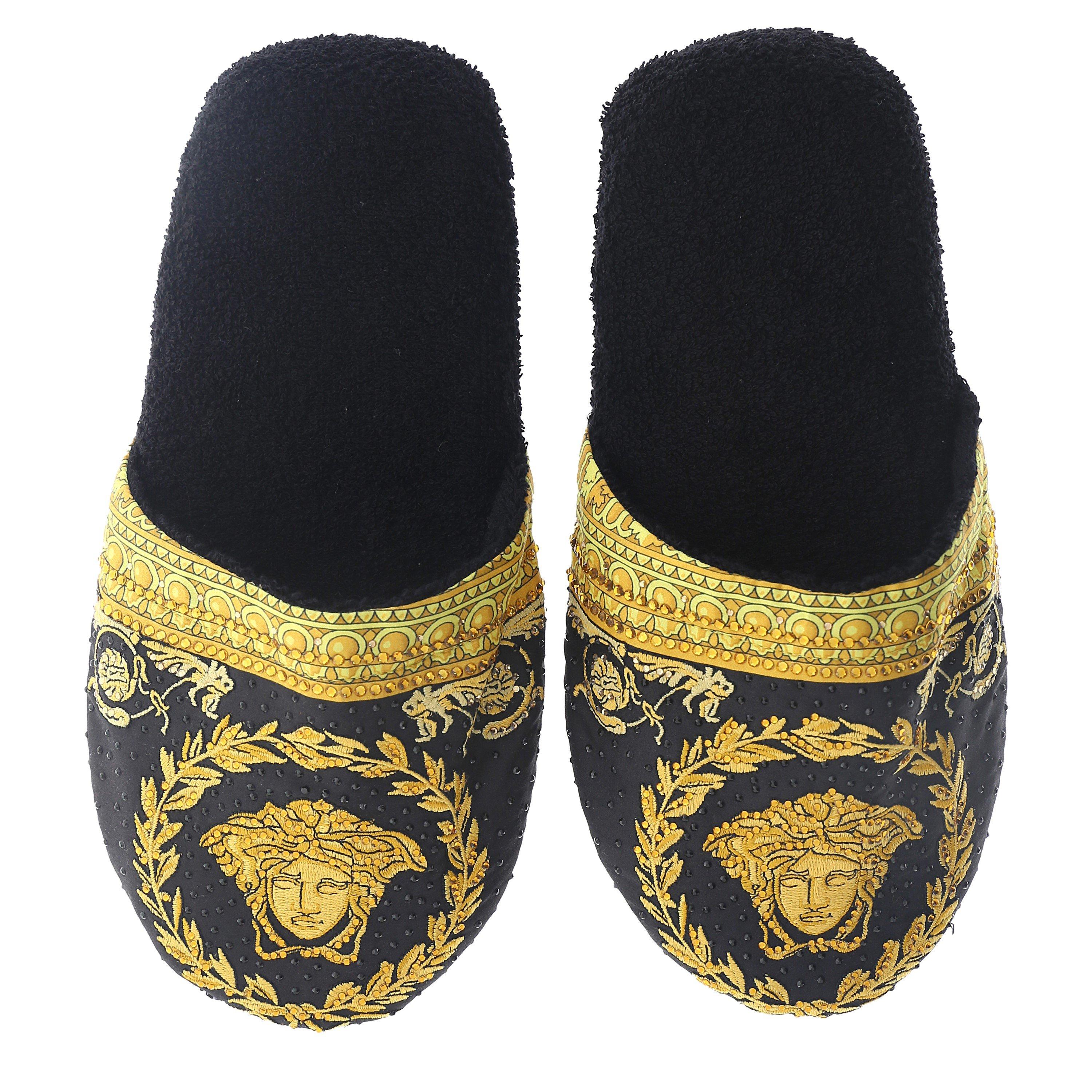 Slip into something special with these Versace Home slippers showcasing the brand’s ‘I Love Baroque’ print and harnessing sumptuous towelling insoles.